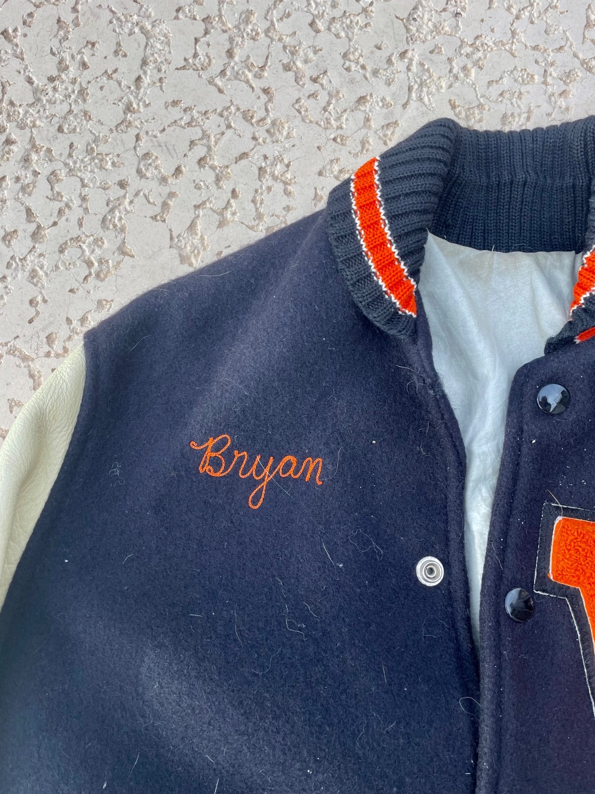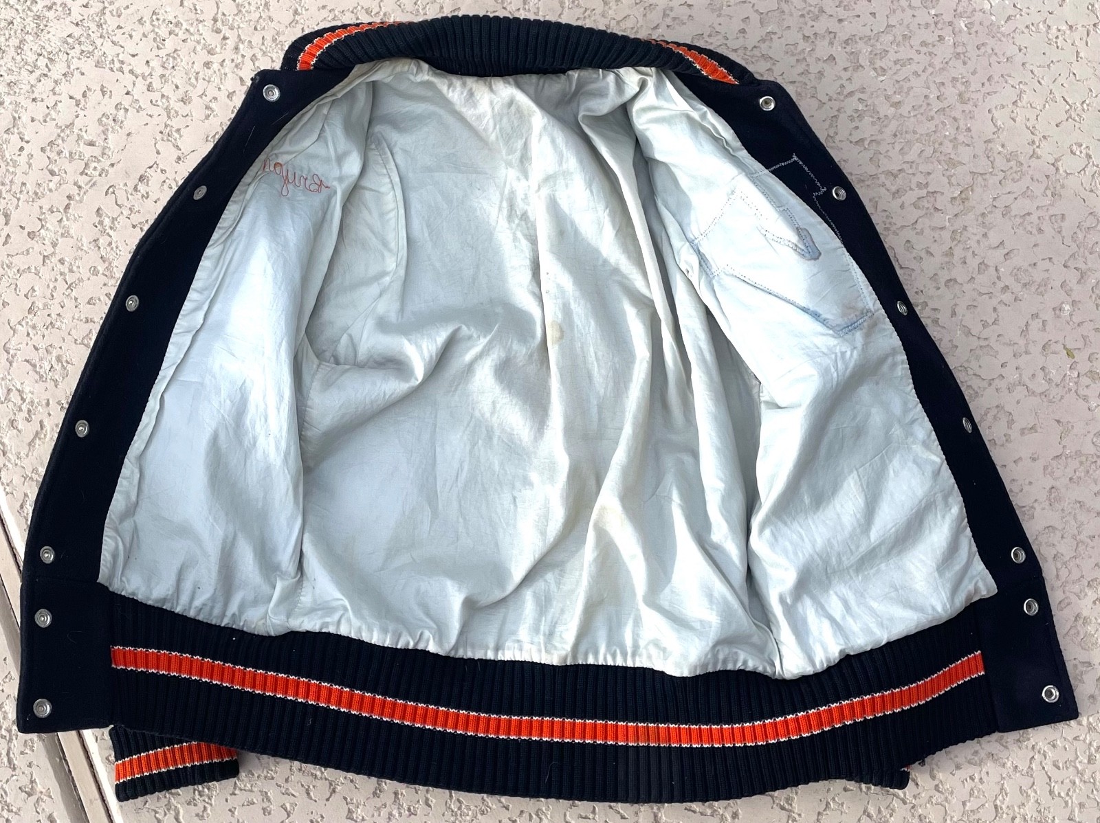 как выглядит Vintage 1970s Lasley Knitting Co Letterman Jacket Wool Leather Sz 36 фото