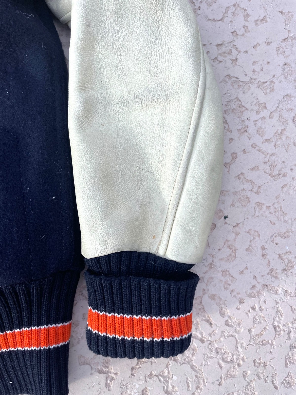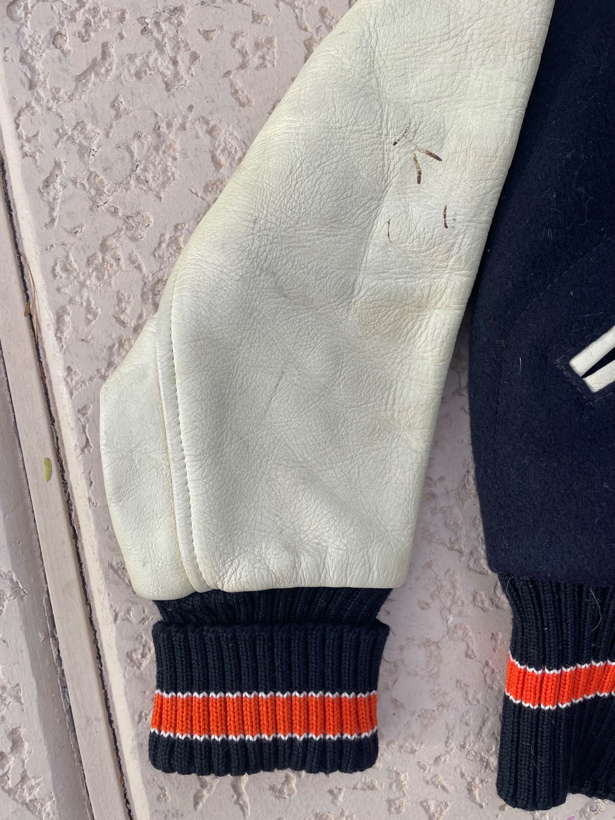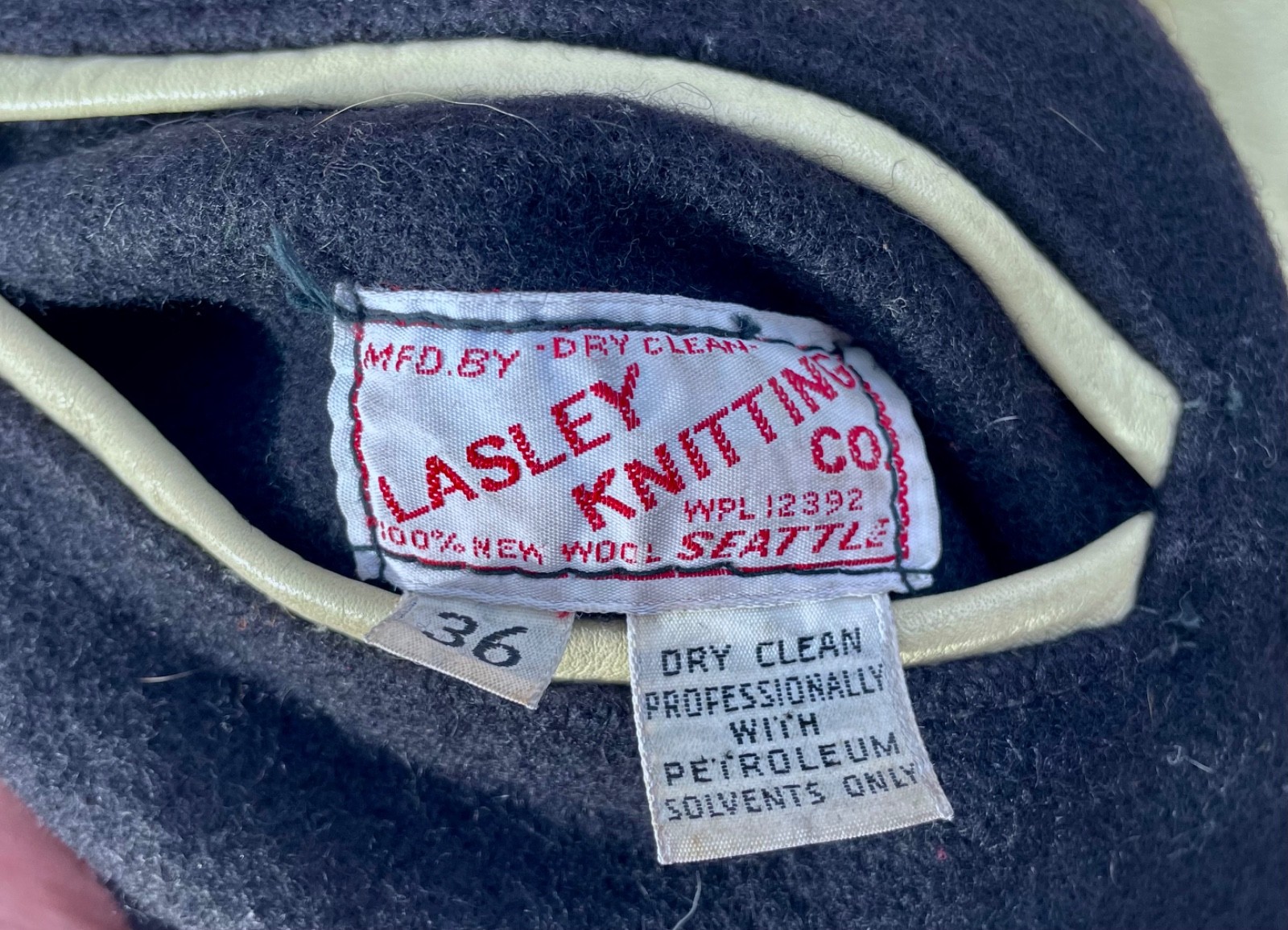 Vintage 1970s Lasley Knitting Co Letterman Jacket Wool Leather Sz 36
