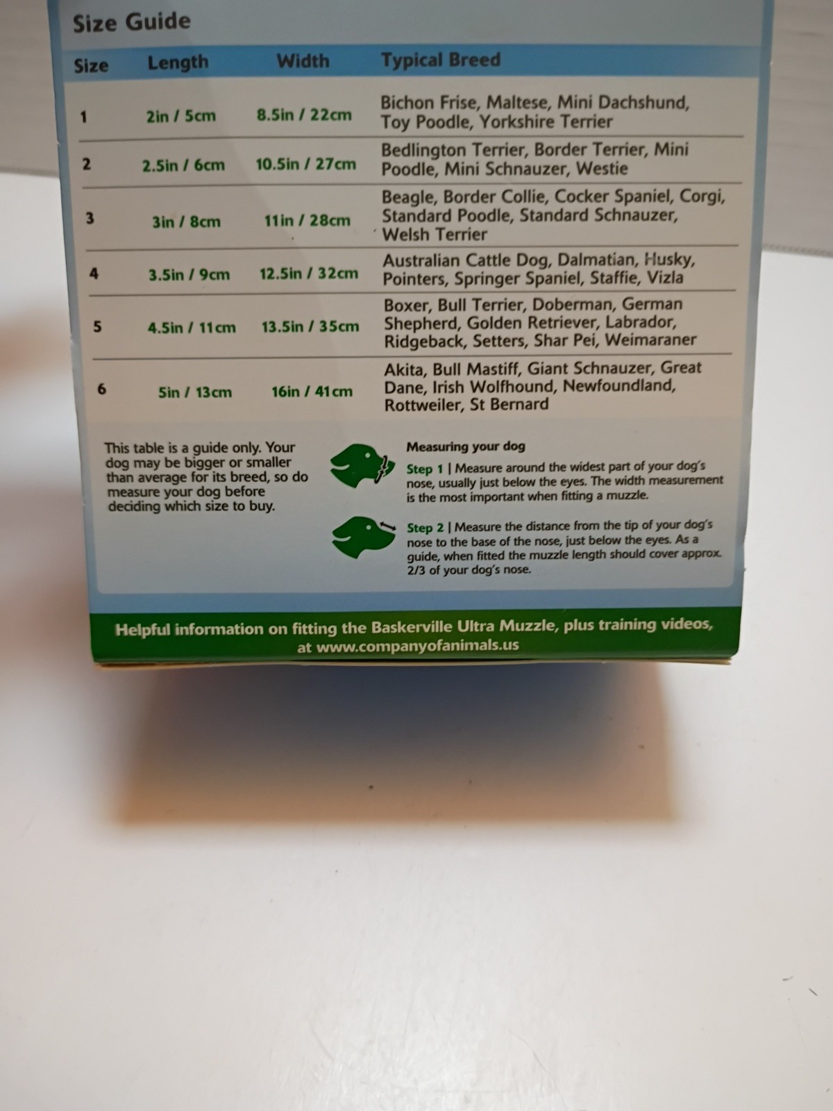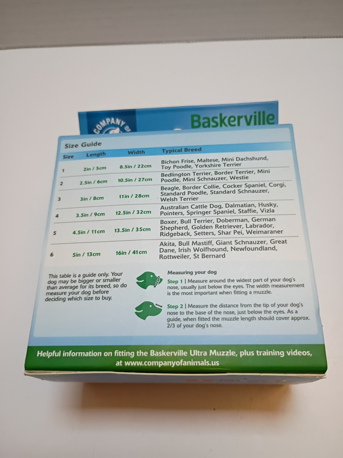 Baskerville Ultra Dog Muzzle Size 1 New Improved - 2 Long 8.5 Wide