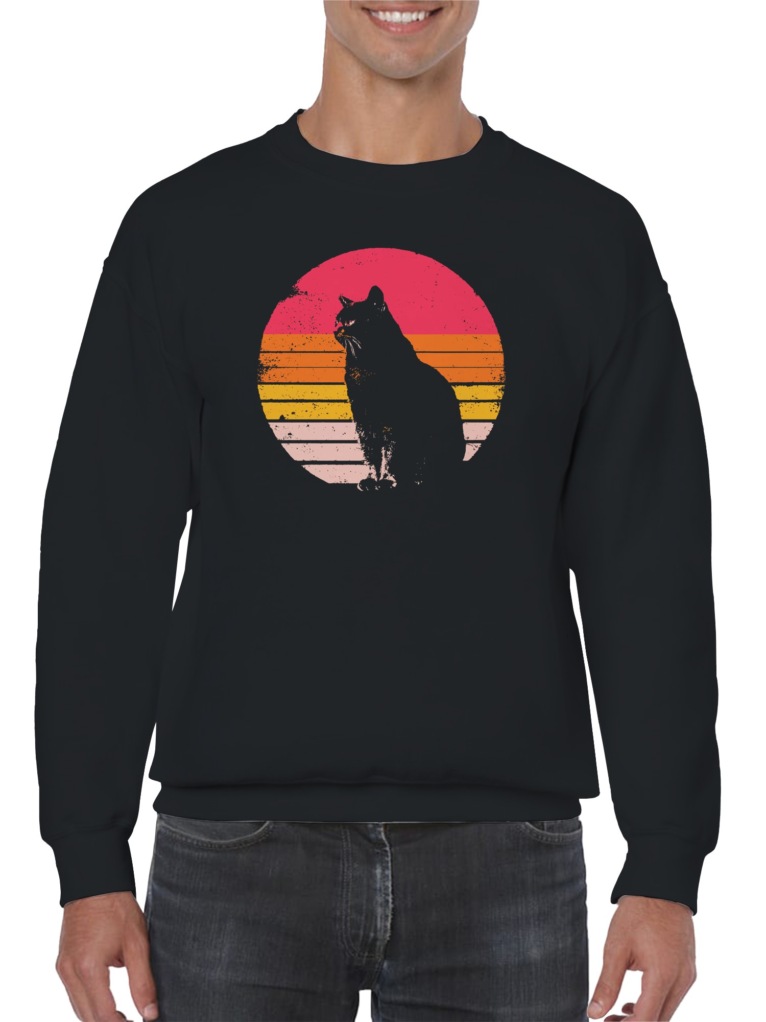 как выглядит Vintage Sunset Cat Silhouette Mens Sweatshirt фото