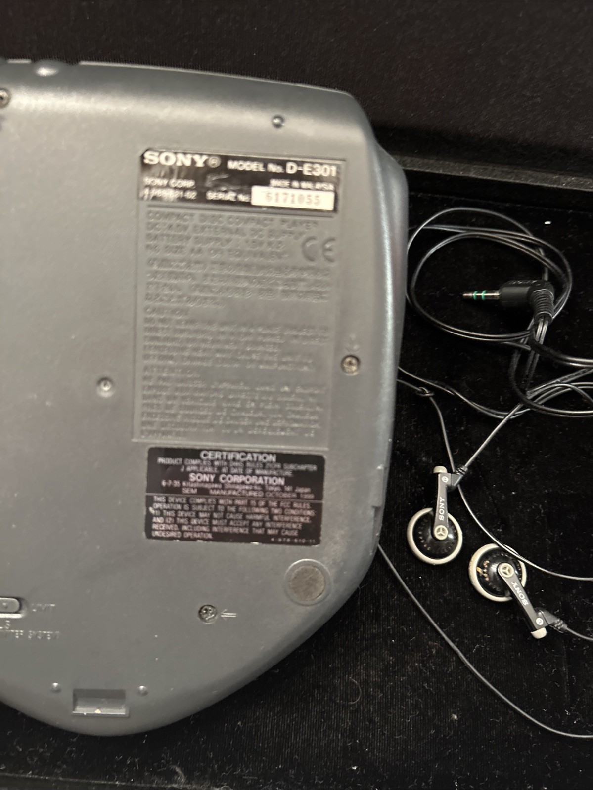 VTG 1998 Sony Discman ESP Mega Bass CD Compact Player D-E301 W/ Headphones Work