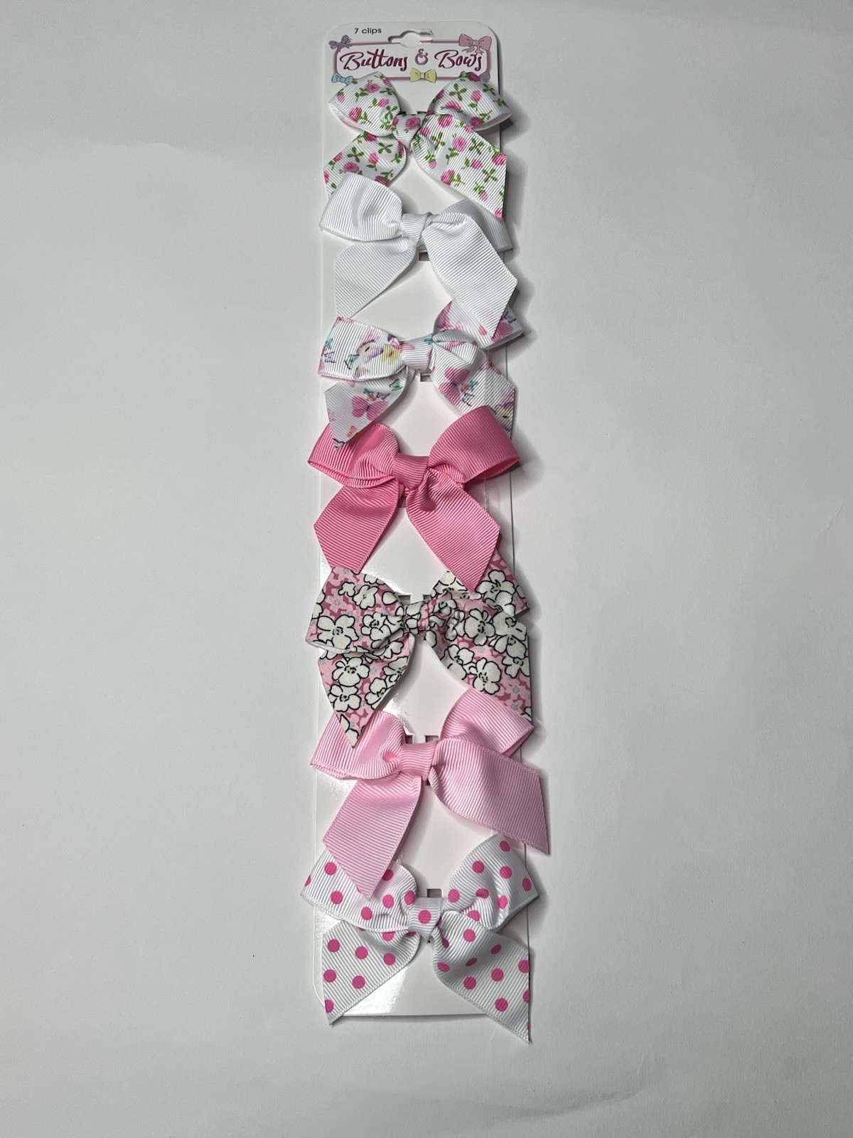 Girls 7 Piece Hair Bow Clip Set Pink Floral Grosgrain Buttons Bows Ribbon Bows