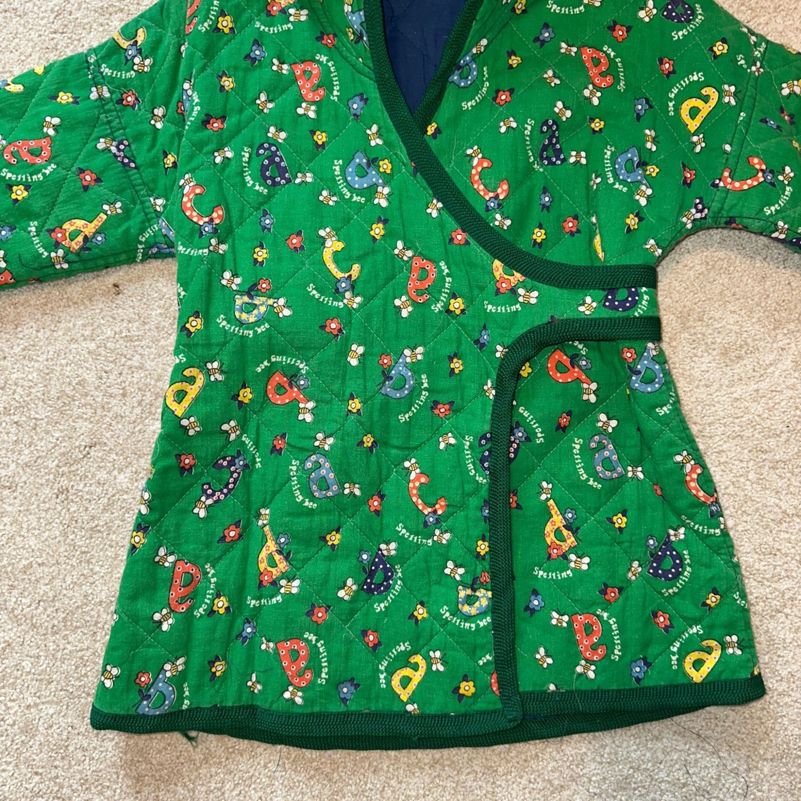 Vintage 70s Kidcore Quilted Robe Primary Spelling Bee Alphabet Novelty Youth 6/7