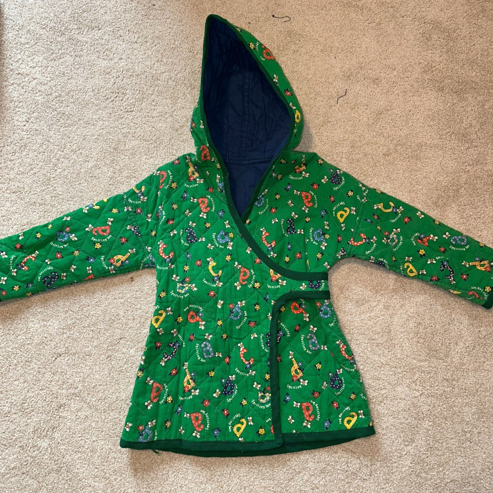 как выглядит Vintage 70s Kidcore Quilted Robe Primary Spelling Bee Alphabet Novelty Youth 6/7 фото