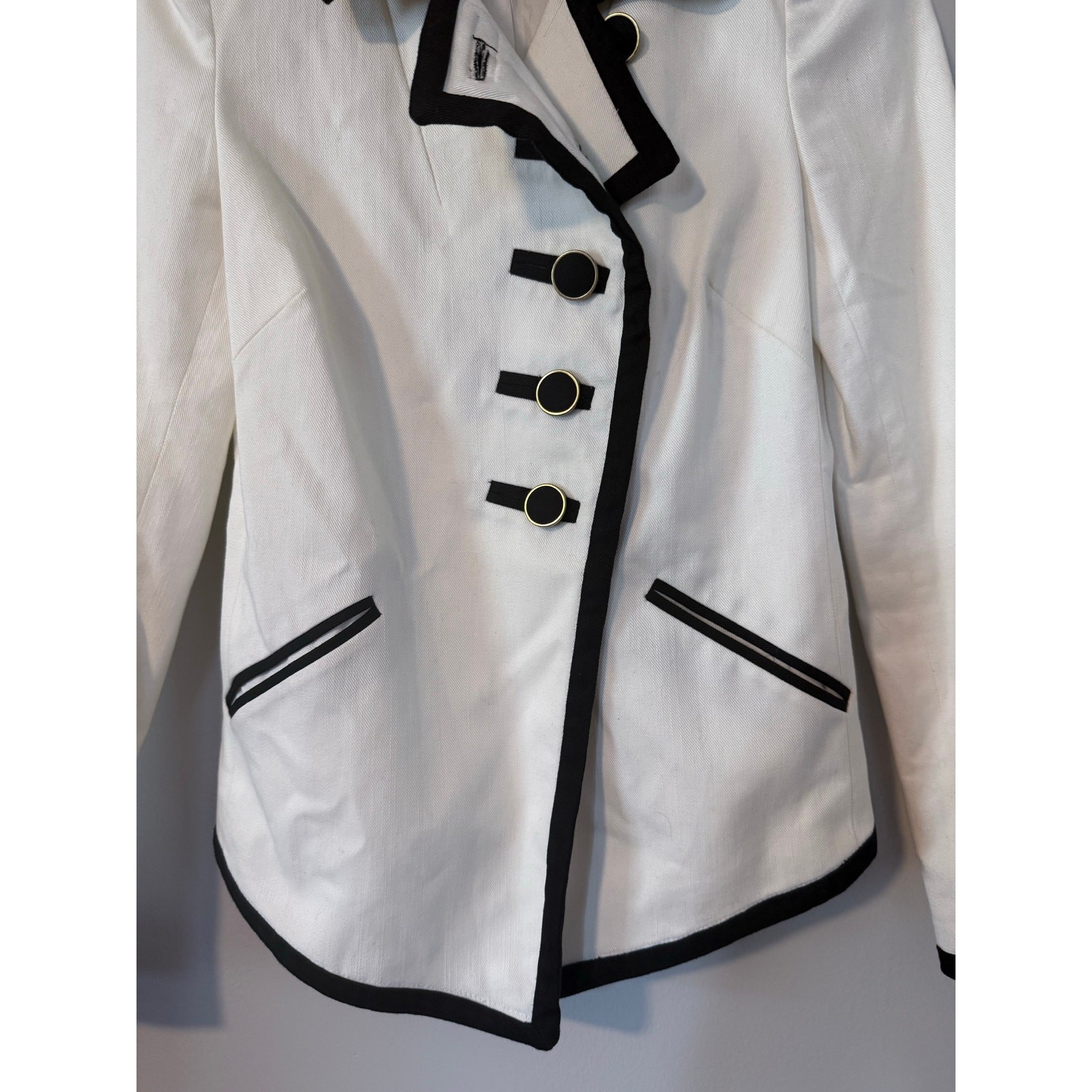как выглядит REISS 1971 collection white black asymmetrical tuxedo cotton stretch blazer XS фото
