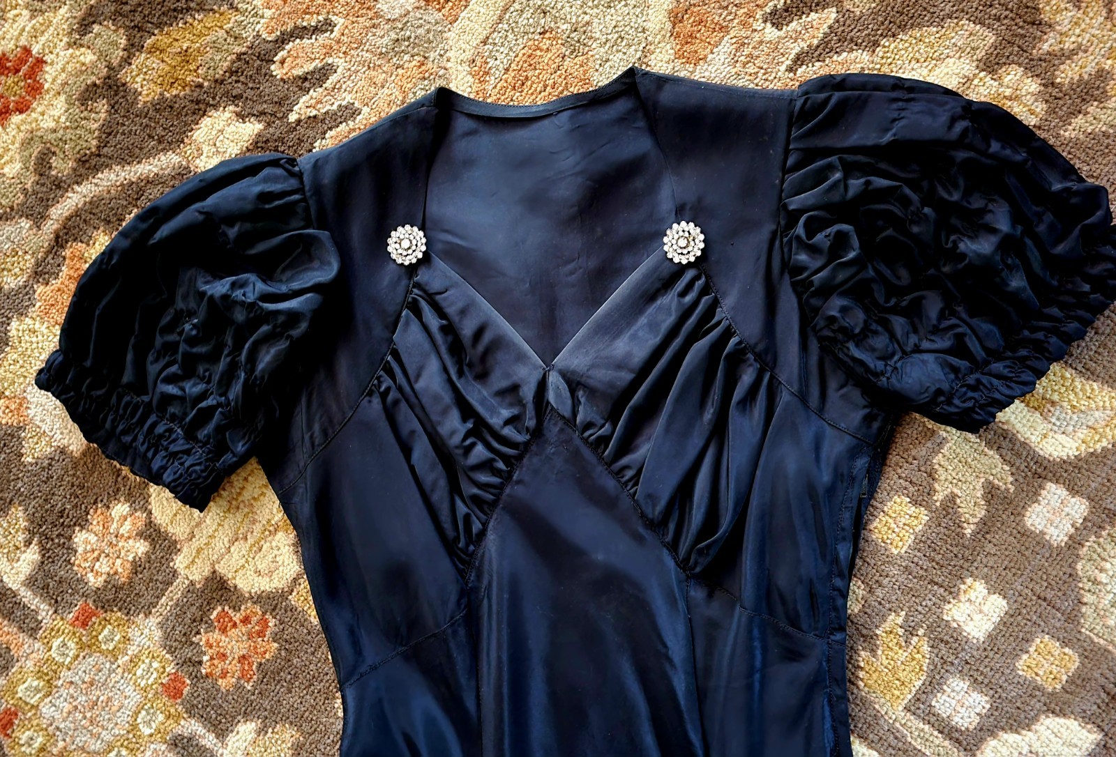 как выглядит Vintage 40s long black taffeta evening Formal Dress, Great cond bust 35", W 28" фото