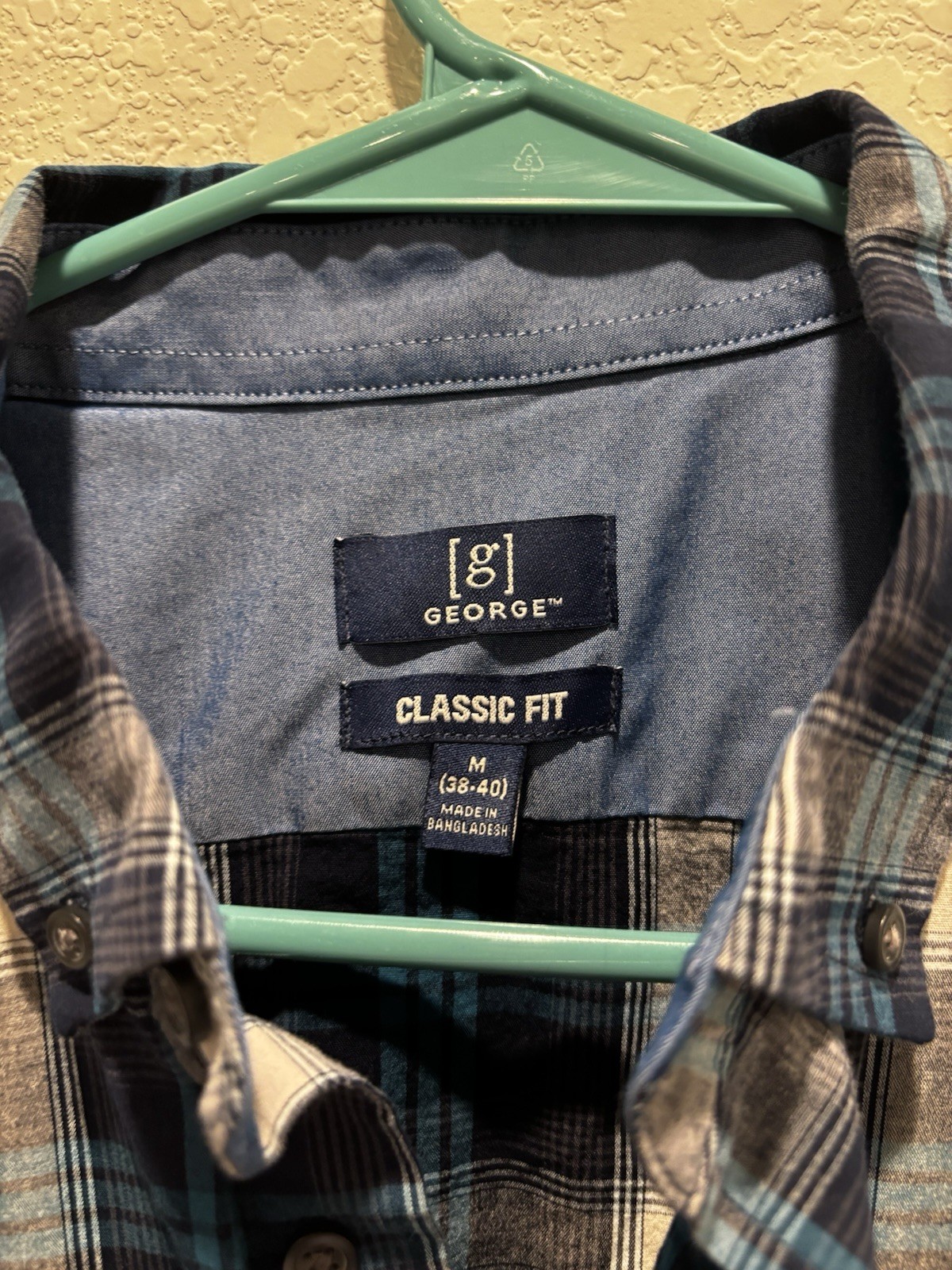 как выглядит George Men s Plaid Long Sleeve Button Front Shirt Size Medium фото