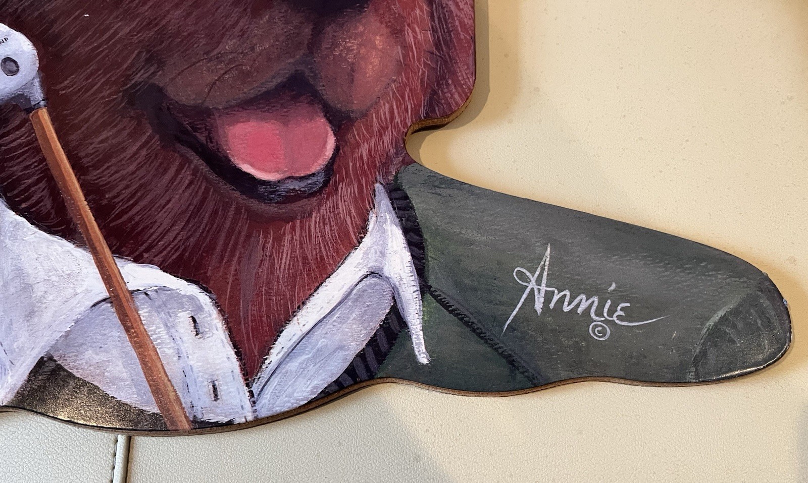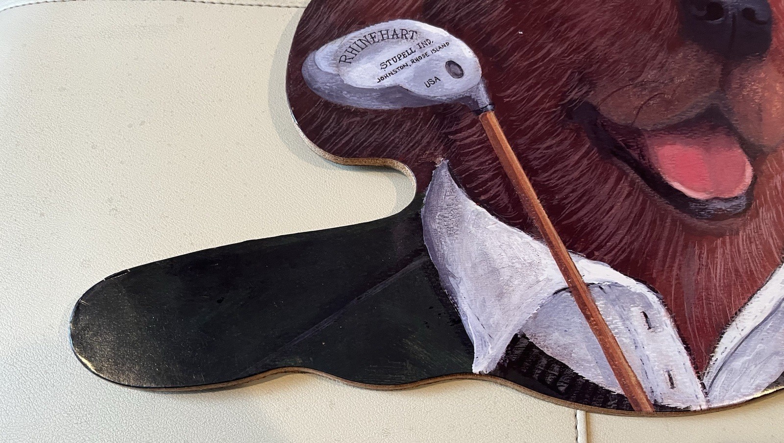 как выглядит Vintage Annie Rhinehart Stupell Wooden Hanger Dog Golf Art 16" Wide Made In USA фото