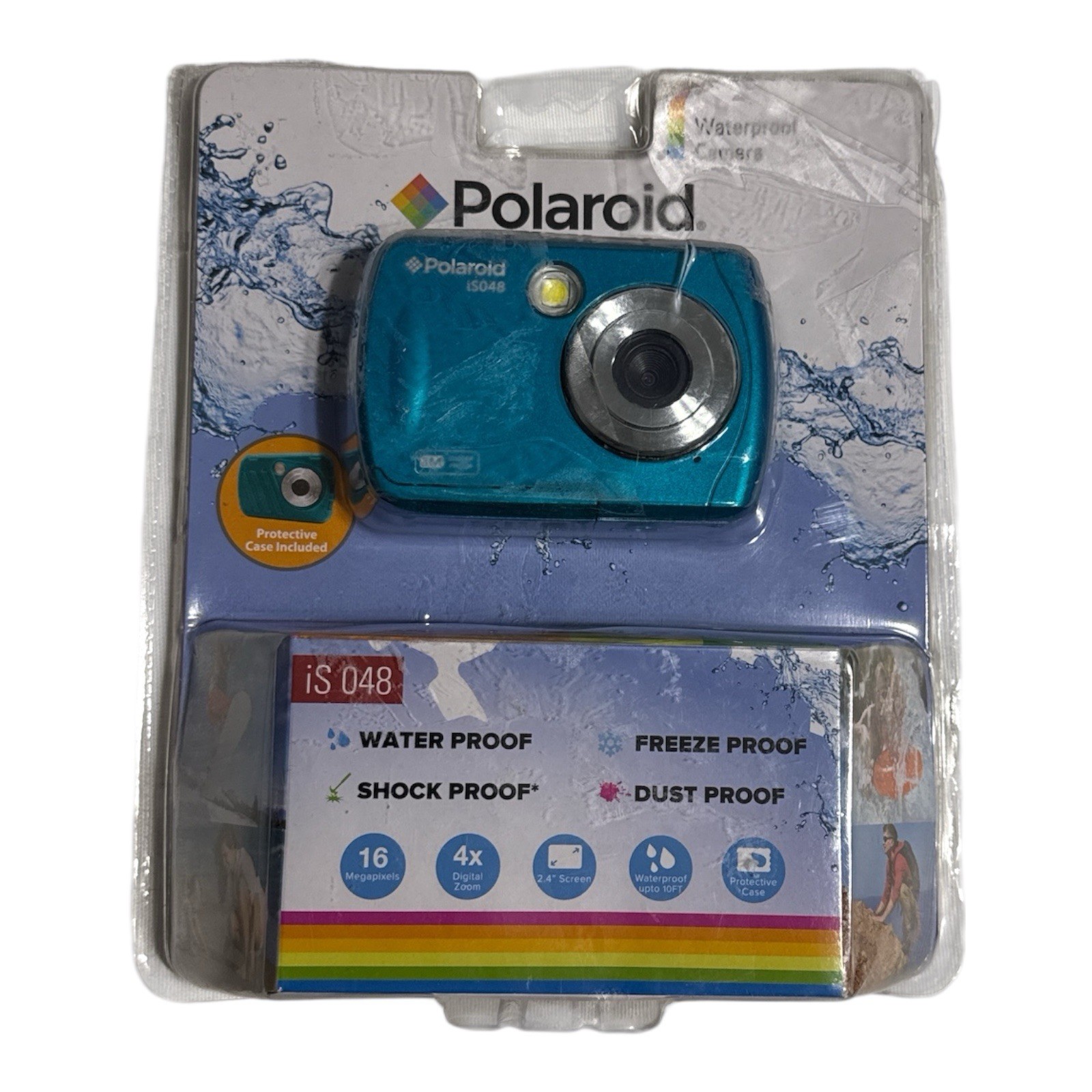 Polaroid iS048 16MP Instant Sharing Waterproof Digital Camera Blue Teal New