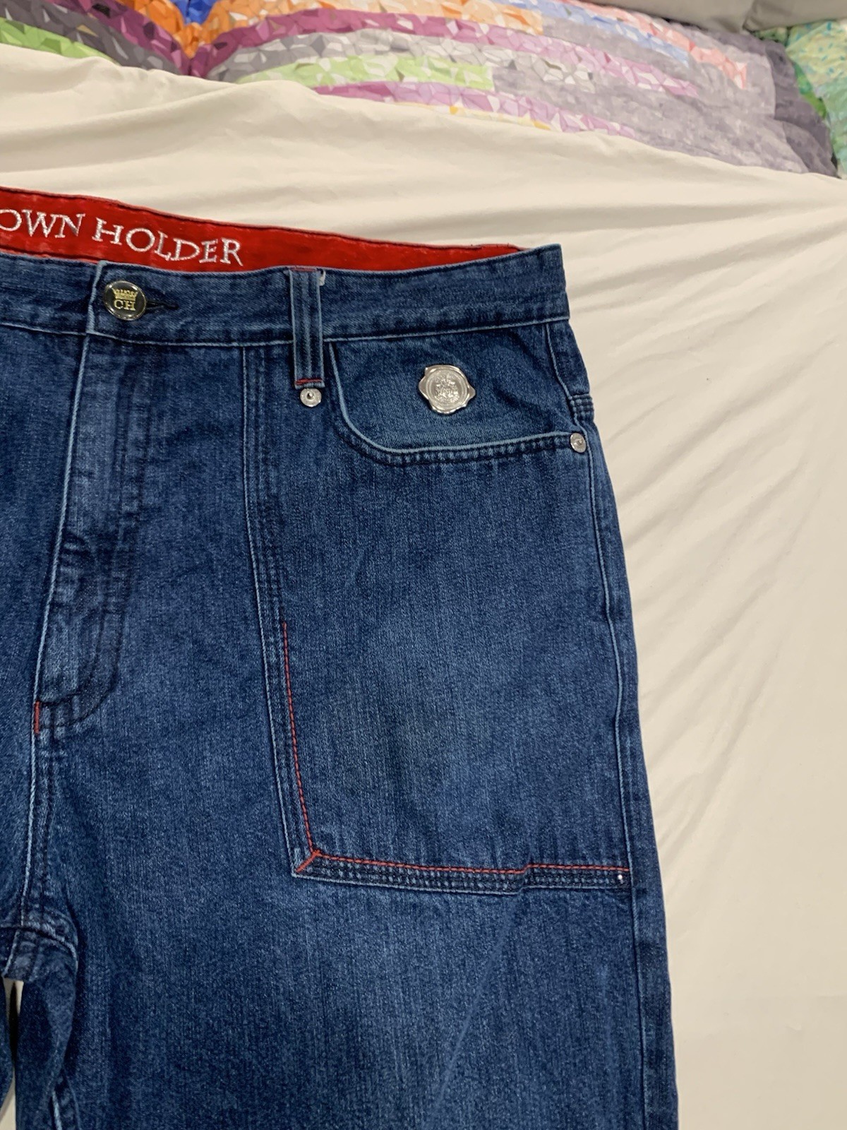 как выглядит VINTAGE Crown Holder Jeans Men 42 Blue Loose Baggy Hip Hop Street Wear фото