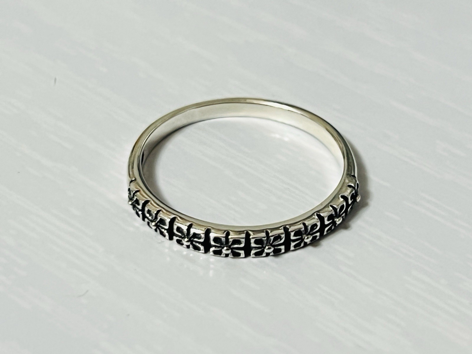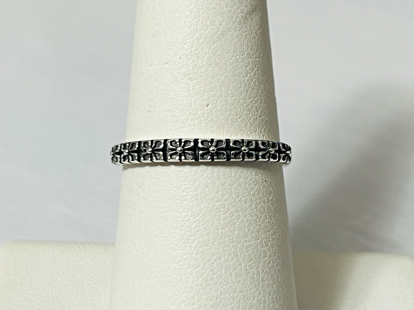 как выглядит Sterling Silver 2.4mm Floral Band Ring фото