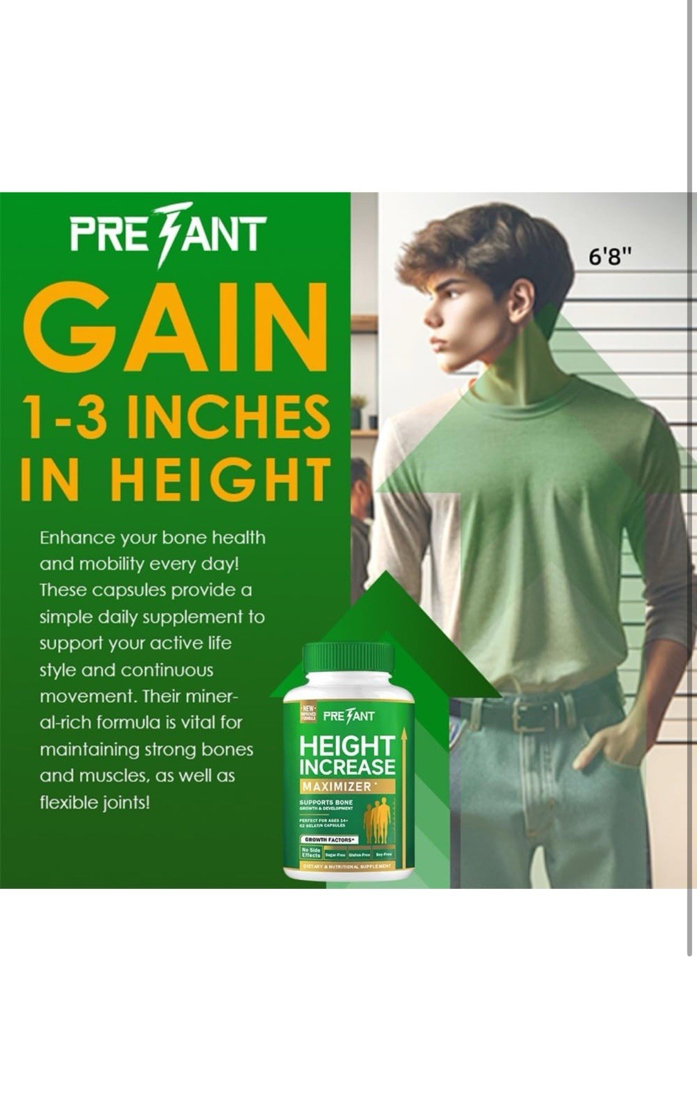 PRETANT Height Increase Maximizer Supports Bone Growth Development 62 Capsules