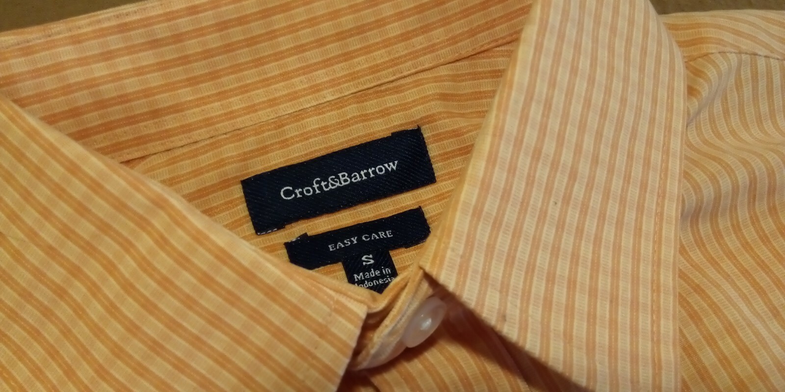 как выглядит Mens Croft Barrow Short Sleeve Shirt Orange Cream Small Resists Wrinkles Pocket фото