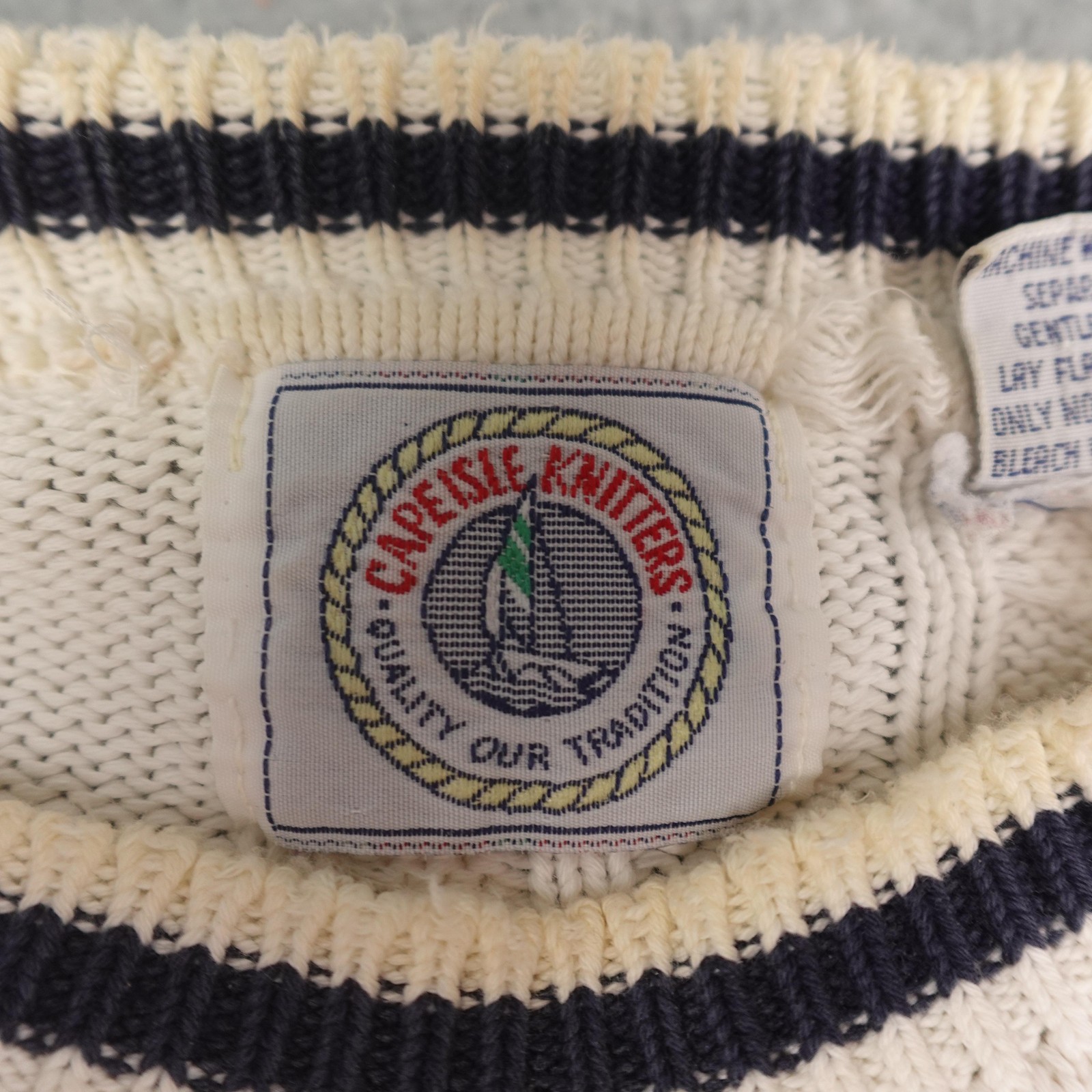 Cape Isle Knitters Sweater Mens XL White Sailboat Cable Knit Nautical Crewneck