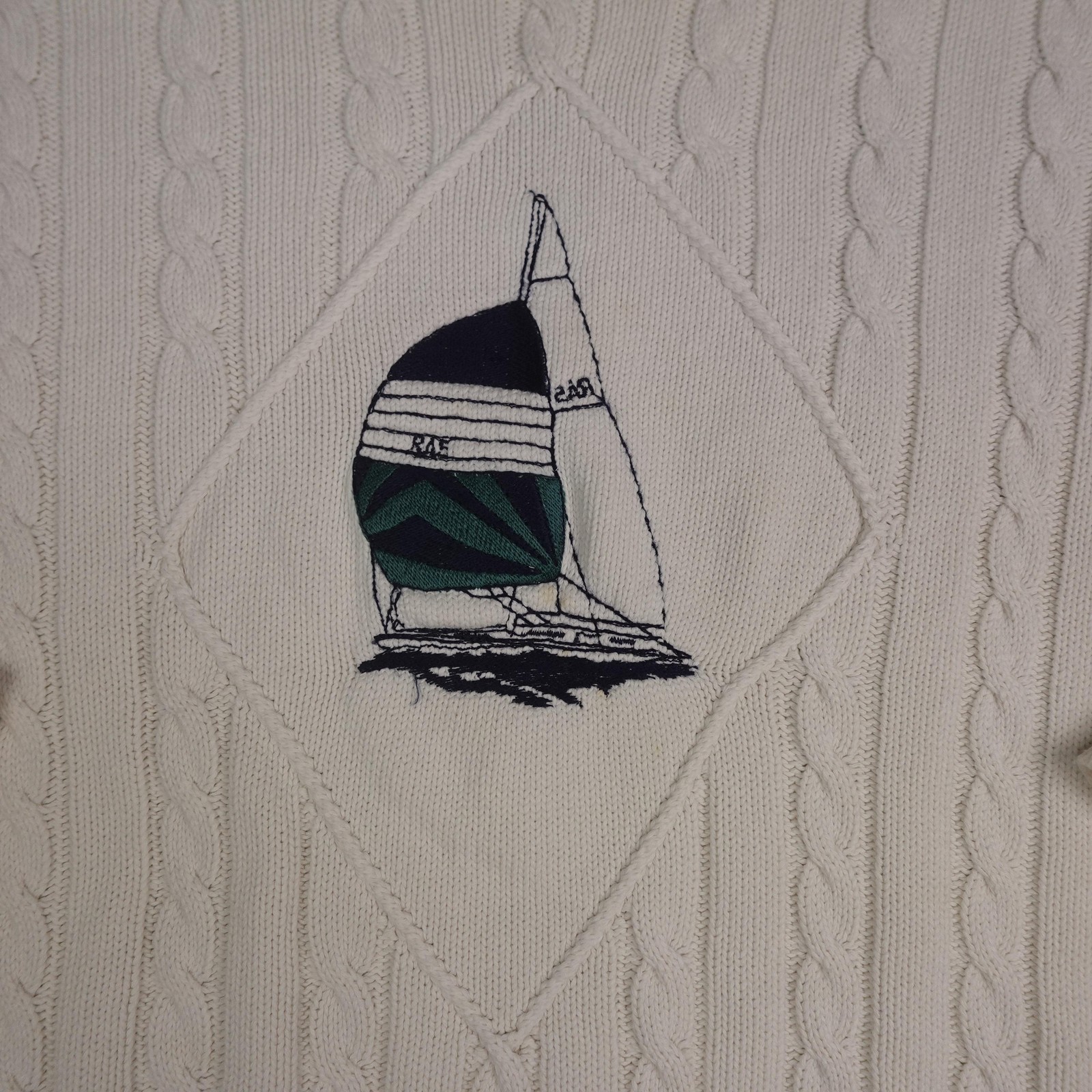 как выглядит Cape Isle Knitters Sweater Mens XL White Sailboat Cable Knit Nautical Crewneck фото