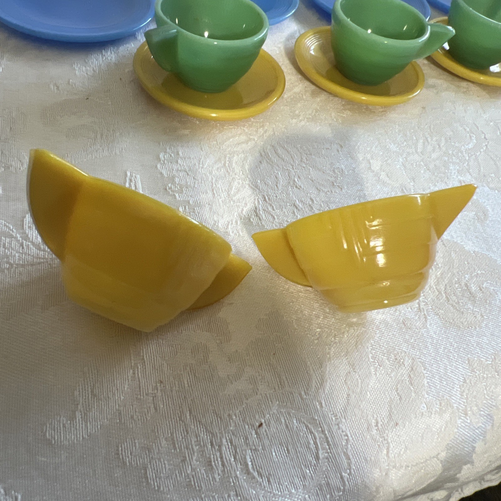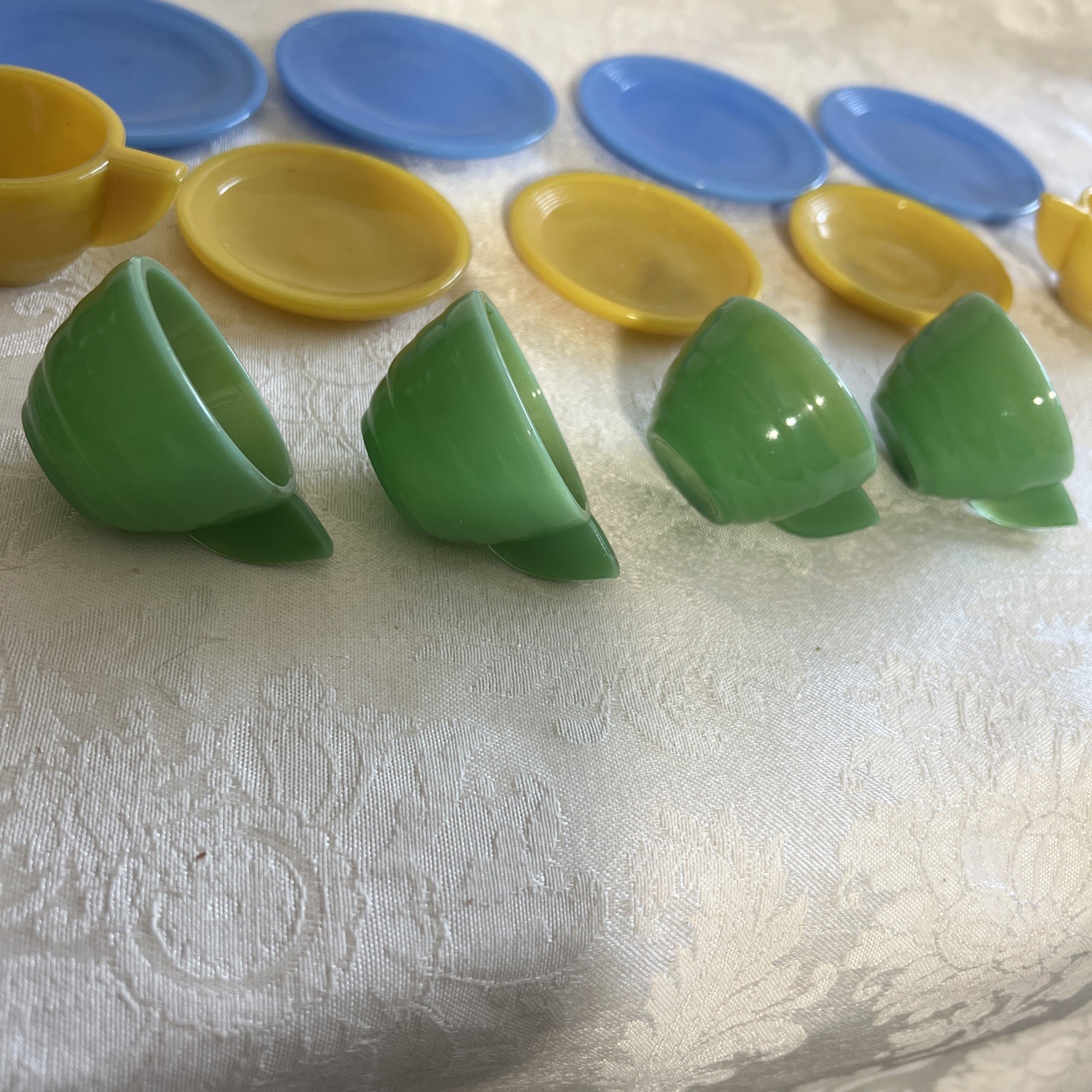 как выглядит VINTAGE 1940S 13 PIECE CHILD GLASS DISHES BY AKRO AGATE COMPANY фото