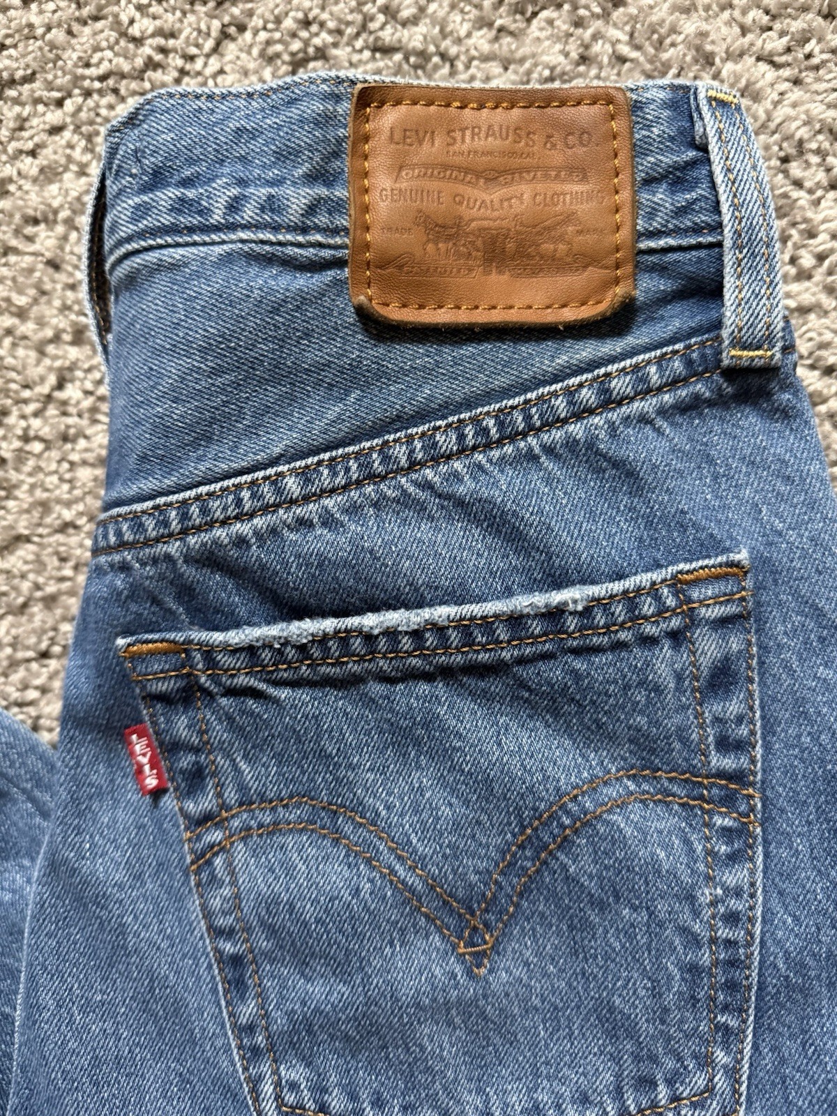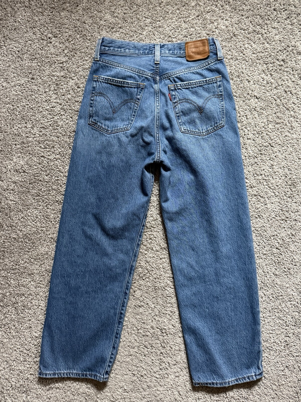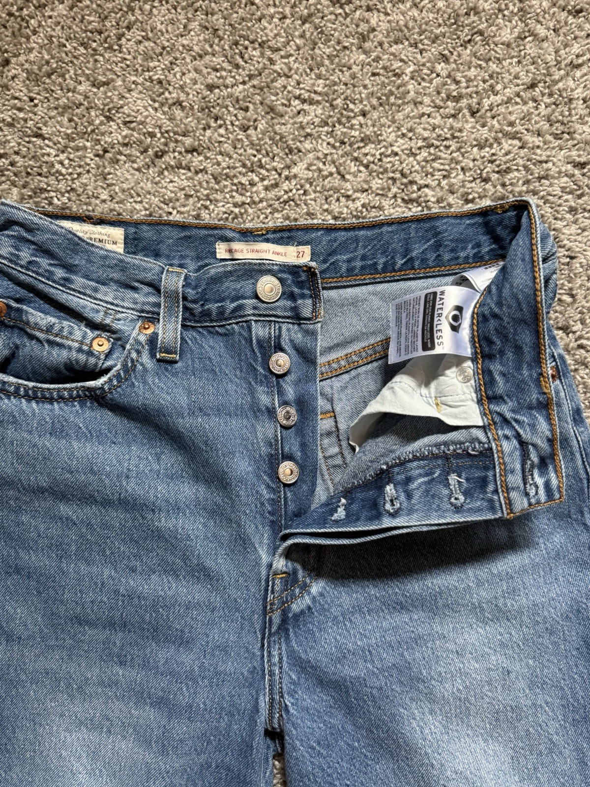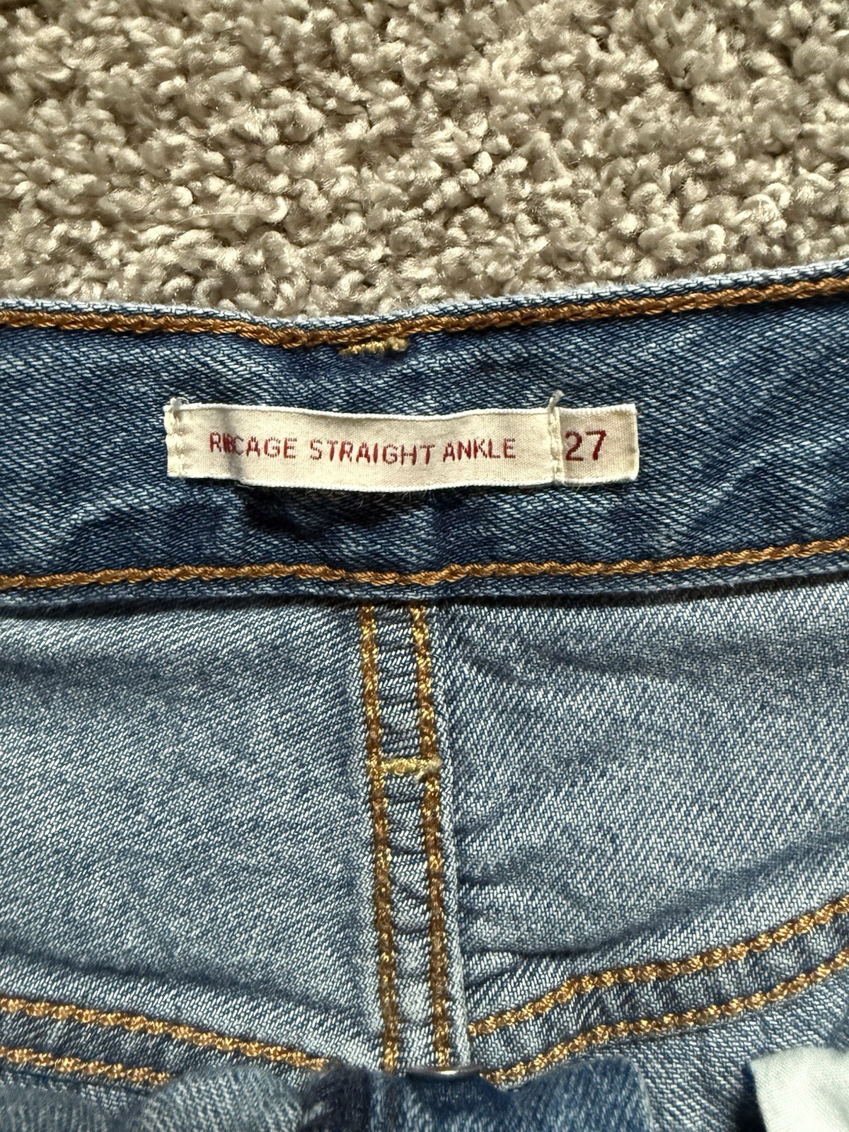 как выглядит Levi s Womens Ribcage Straight Ankle Jeans Size 27 Button Fly Distressed BIG E фото