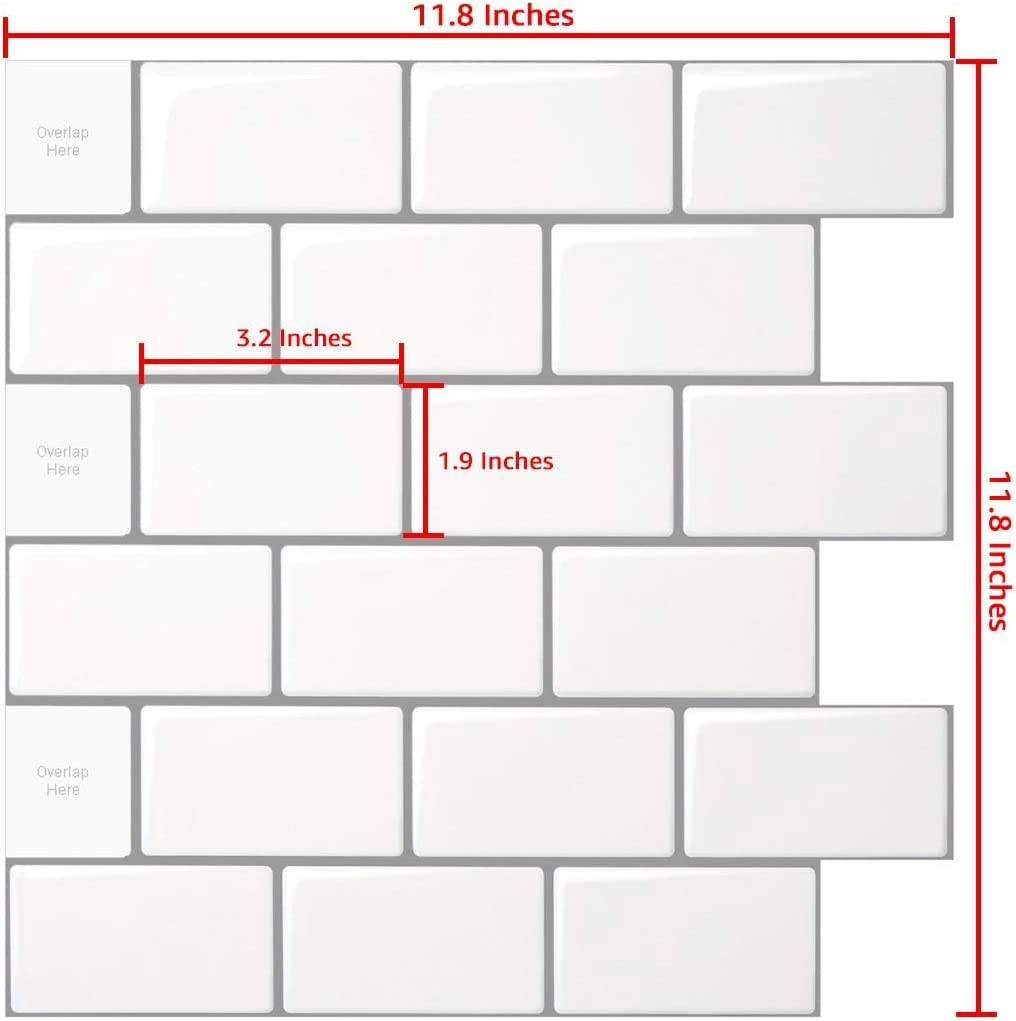 LONGKING 10-Sheet Peel and Stick Tile for Kitchen Backsplash, 12X12 off White