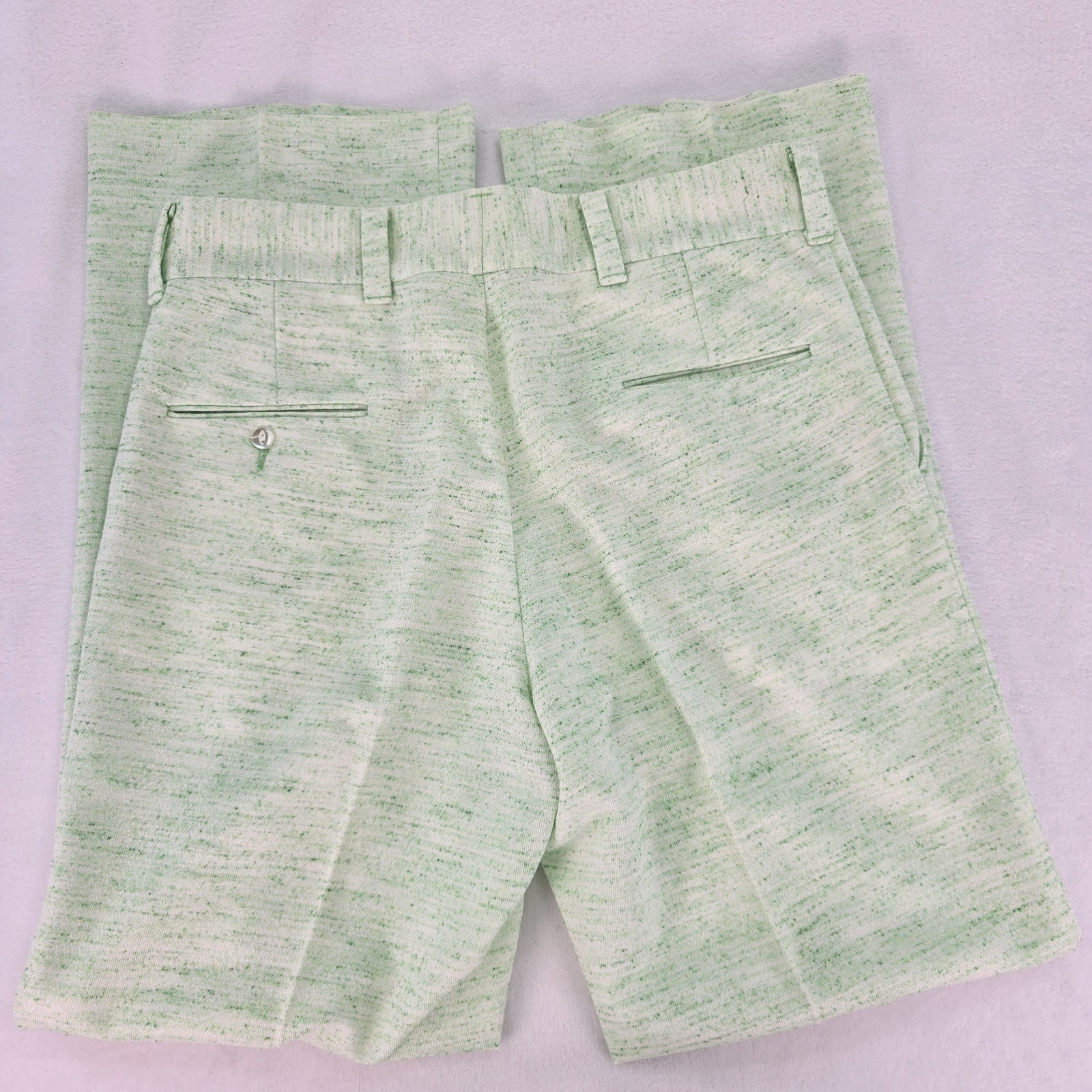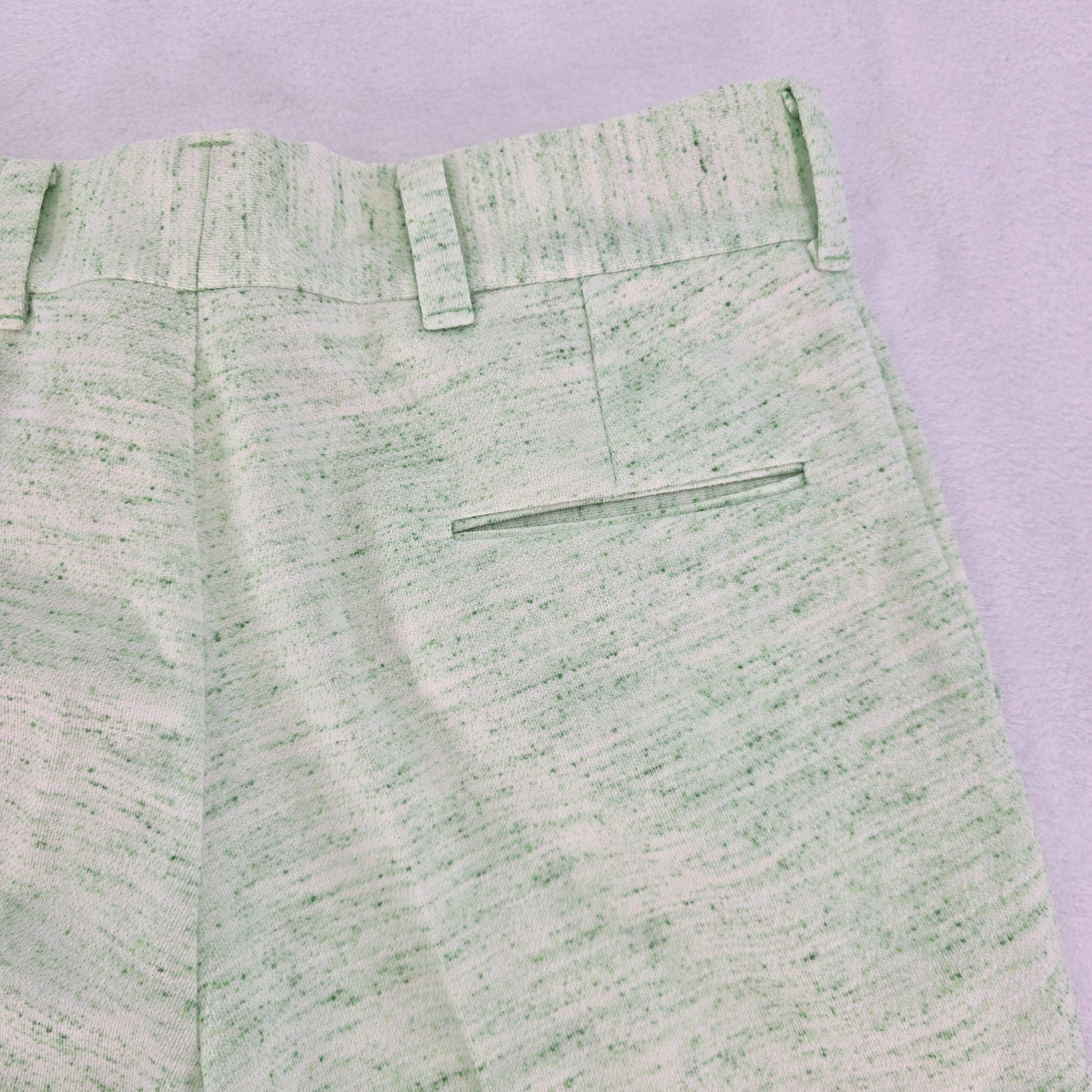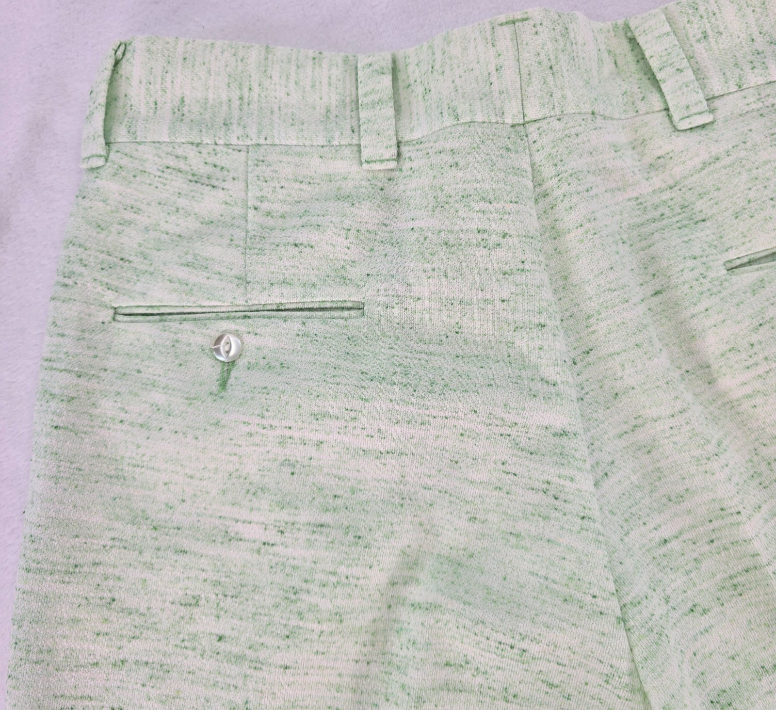 как выглядит Vintage 60s Donegal Double Knit Casual Pants 33"x30.5" Green Flecks on White фото
