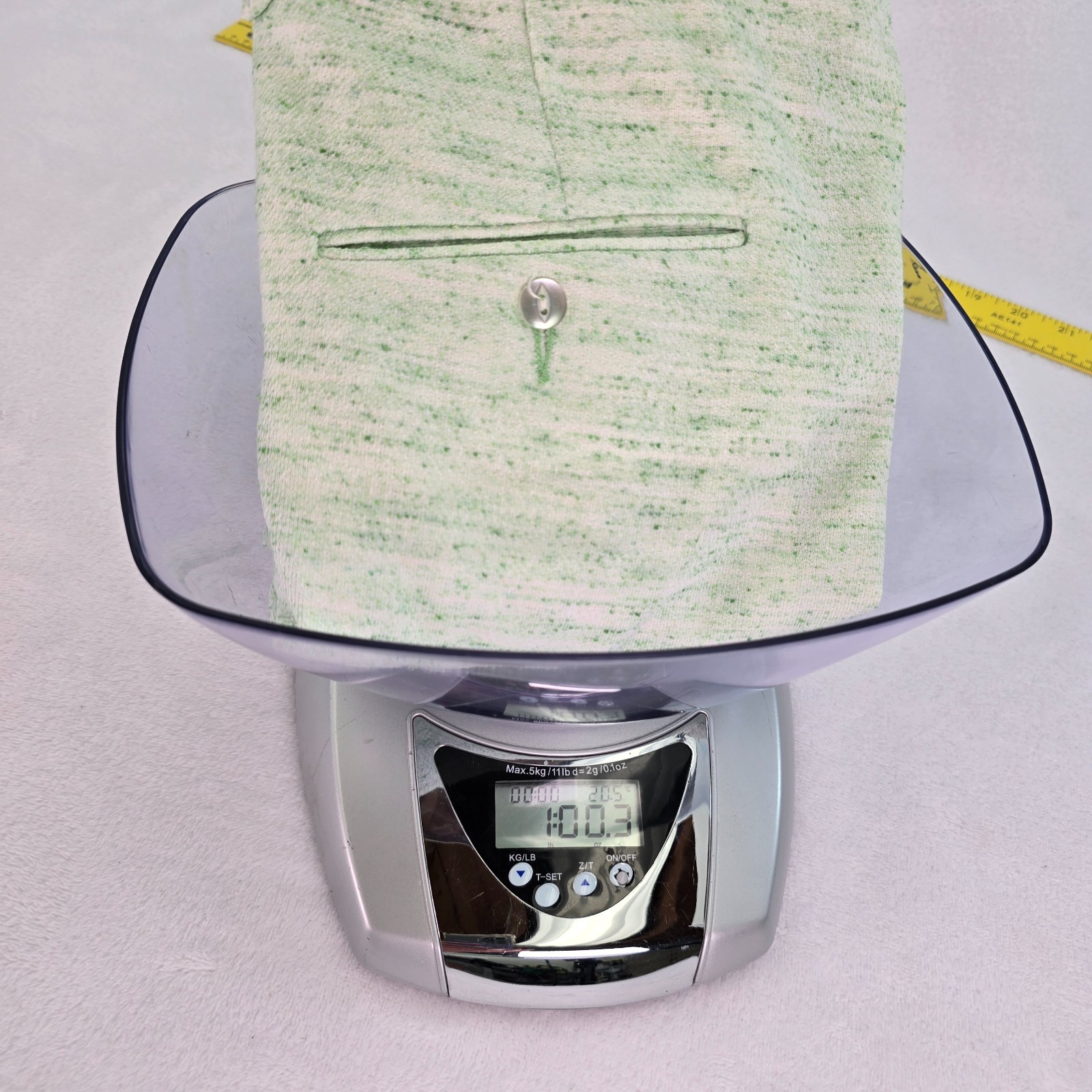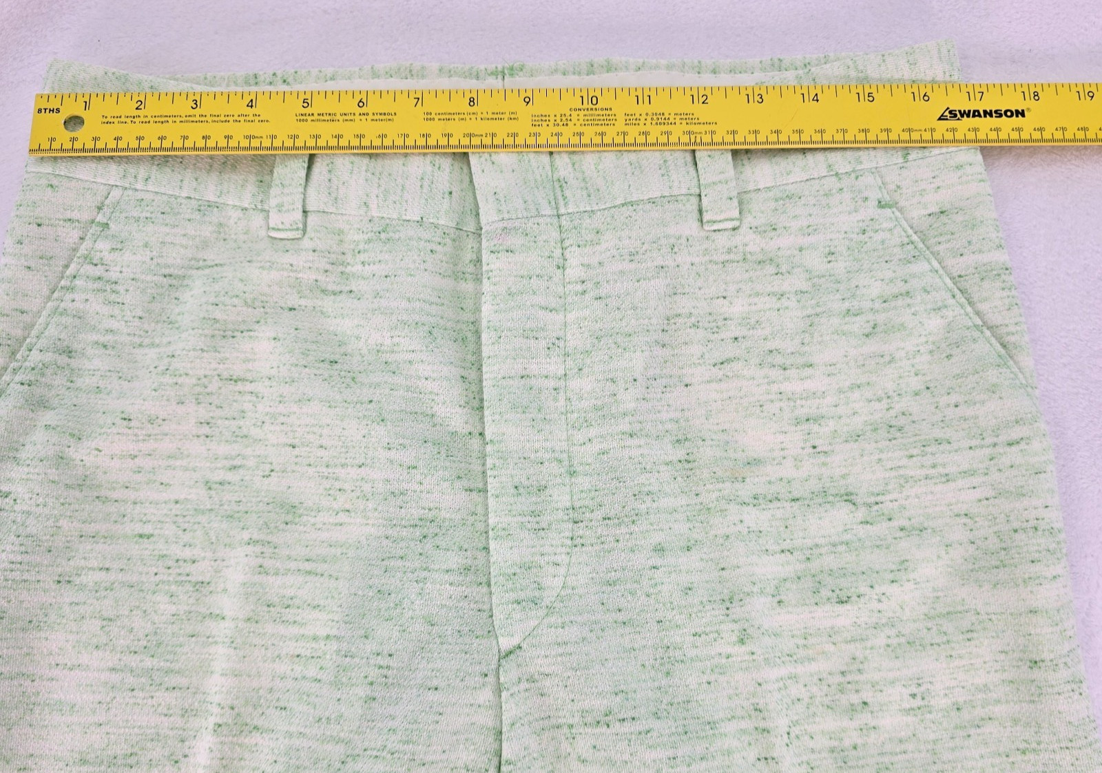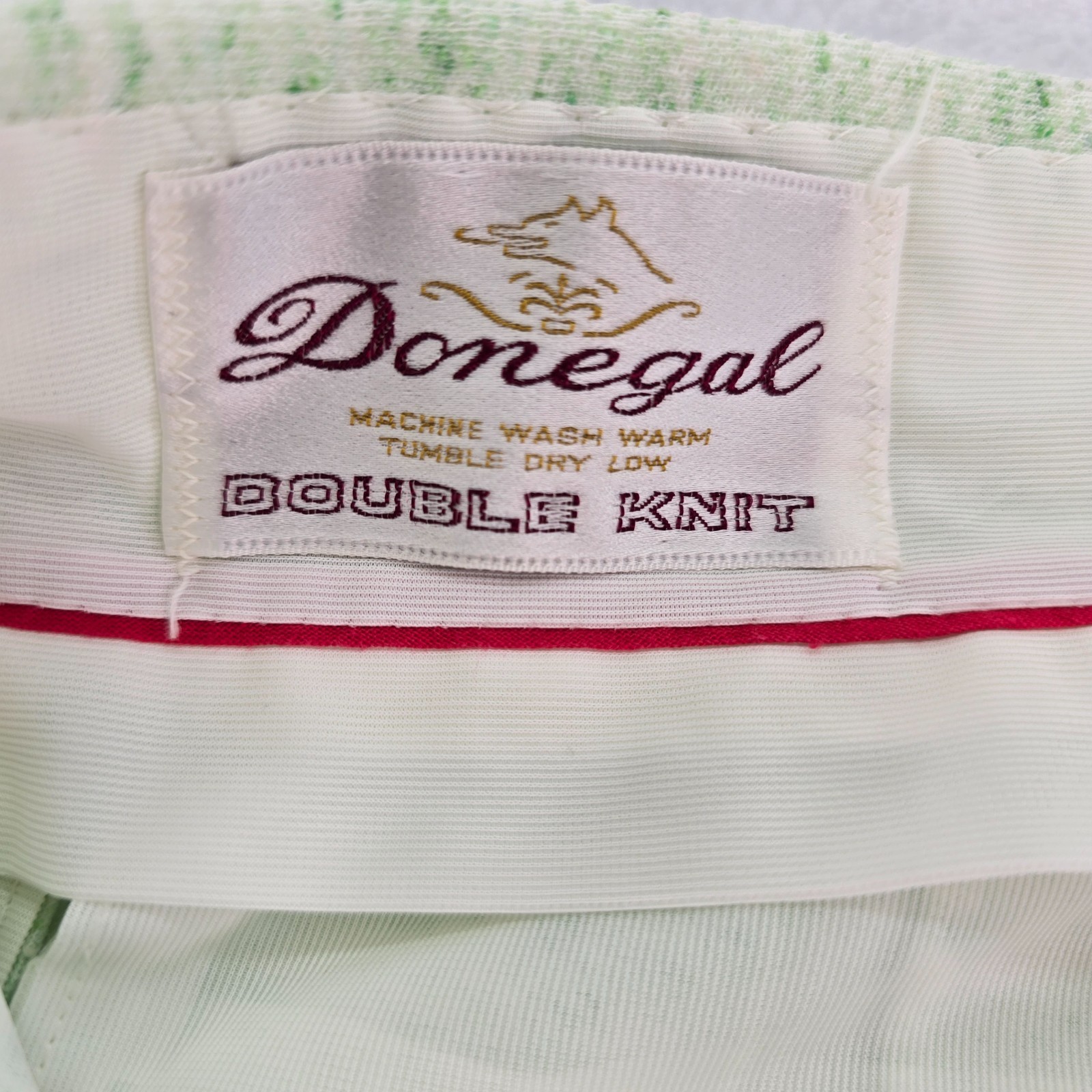 как выглядит Vintage 60s Donegal Double Knit Casual Pants 33"x30.5" Green Flecks on White фото