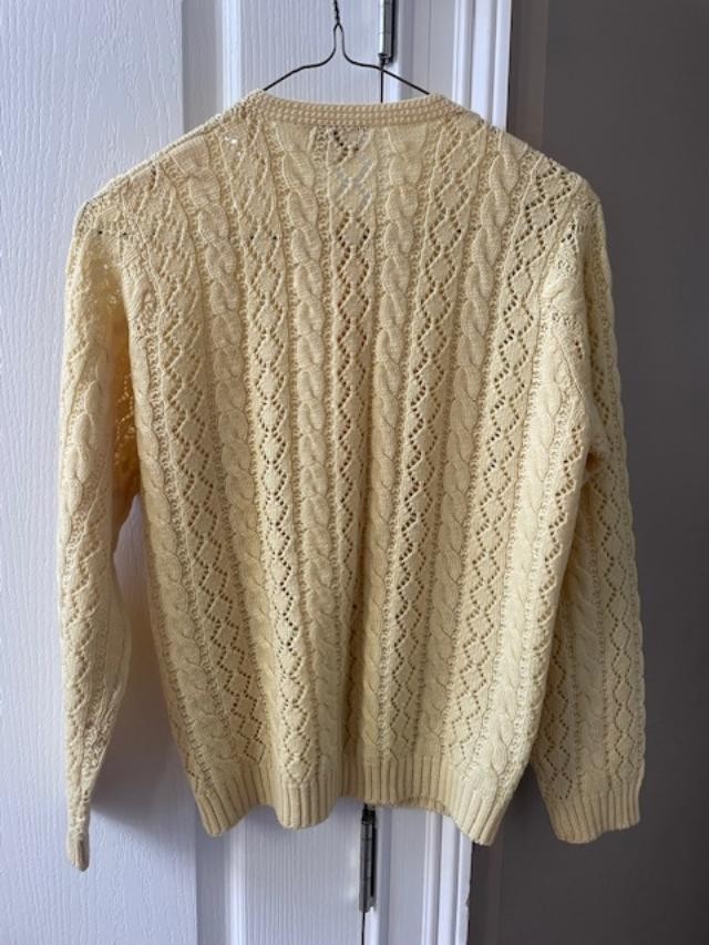 как выглядит VTG Cardigan 100 Wool EU 38 Yellow Cable Boxy Covered Buttons Granny US 6-8 фото