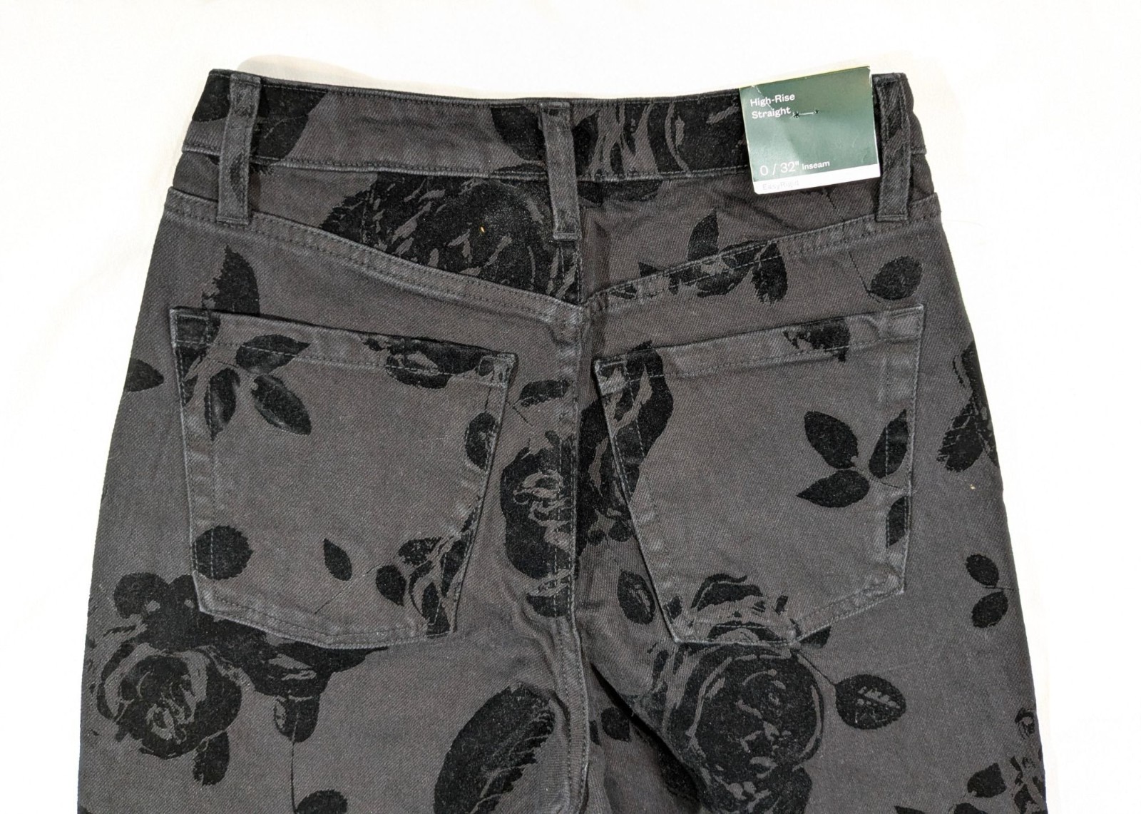 Wild Fable Women's Gray High-Rise Straight Floral Print Jeans Size 0 NWT