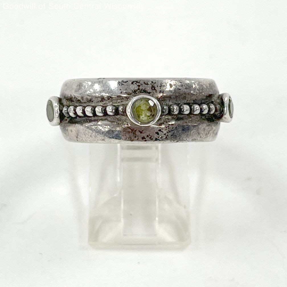 Sterling Silver Round Peridot Studded Ring, SZ 6.5 - 7.11g