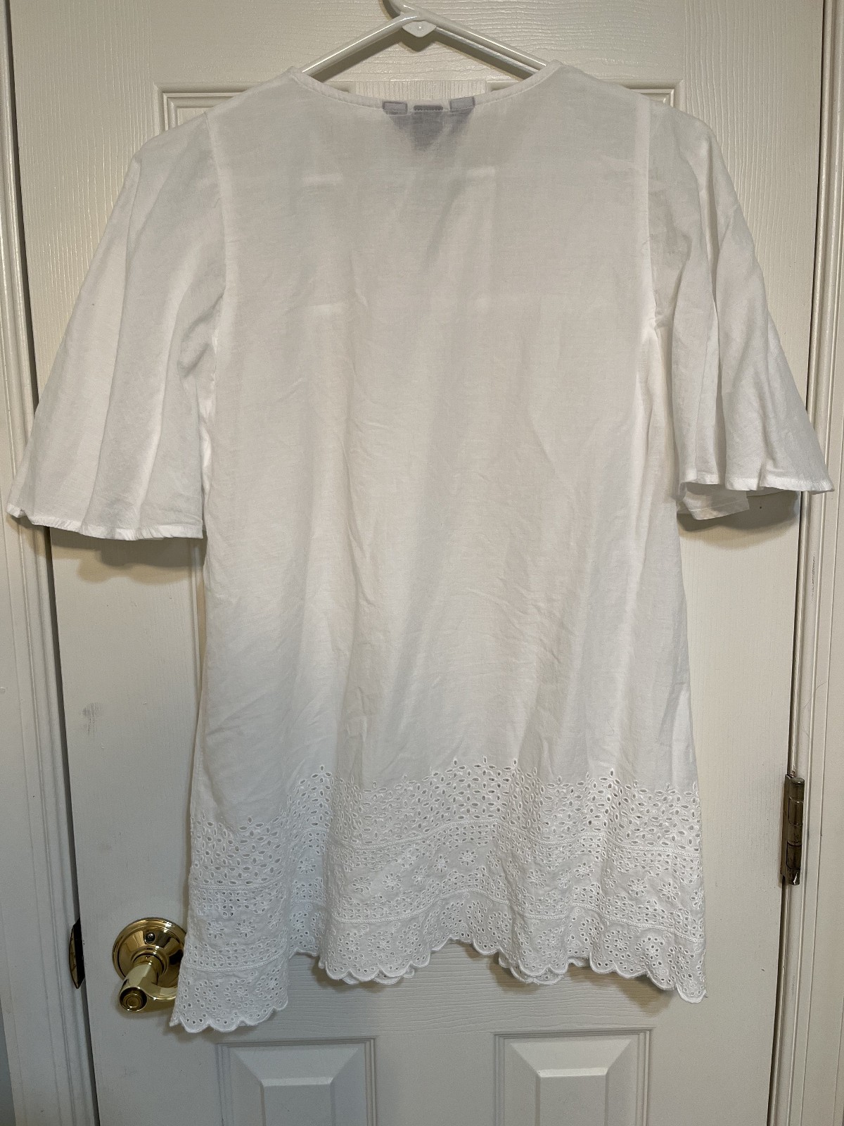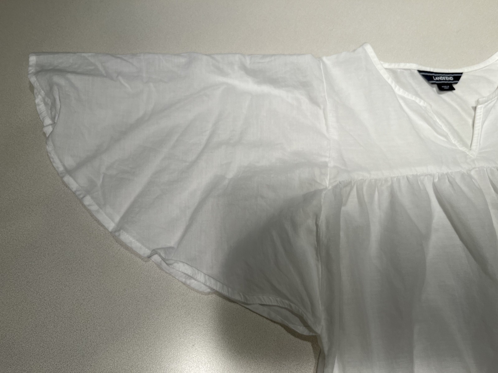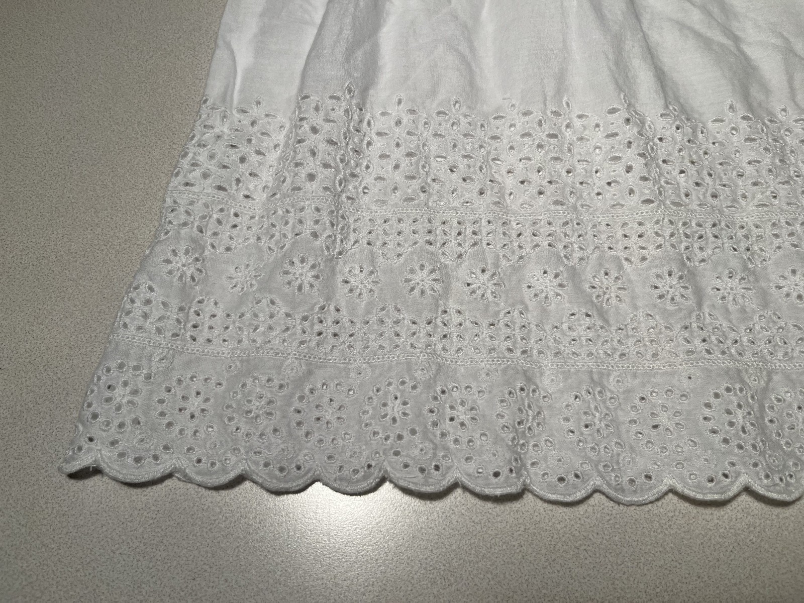 Lands' End Girls White Dress Bell Sleeves Embroidered Lace Hem Size Large 14