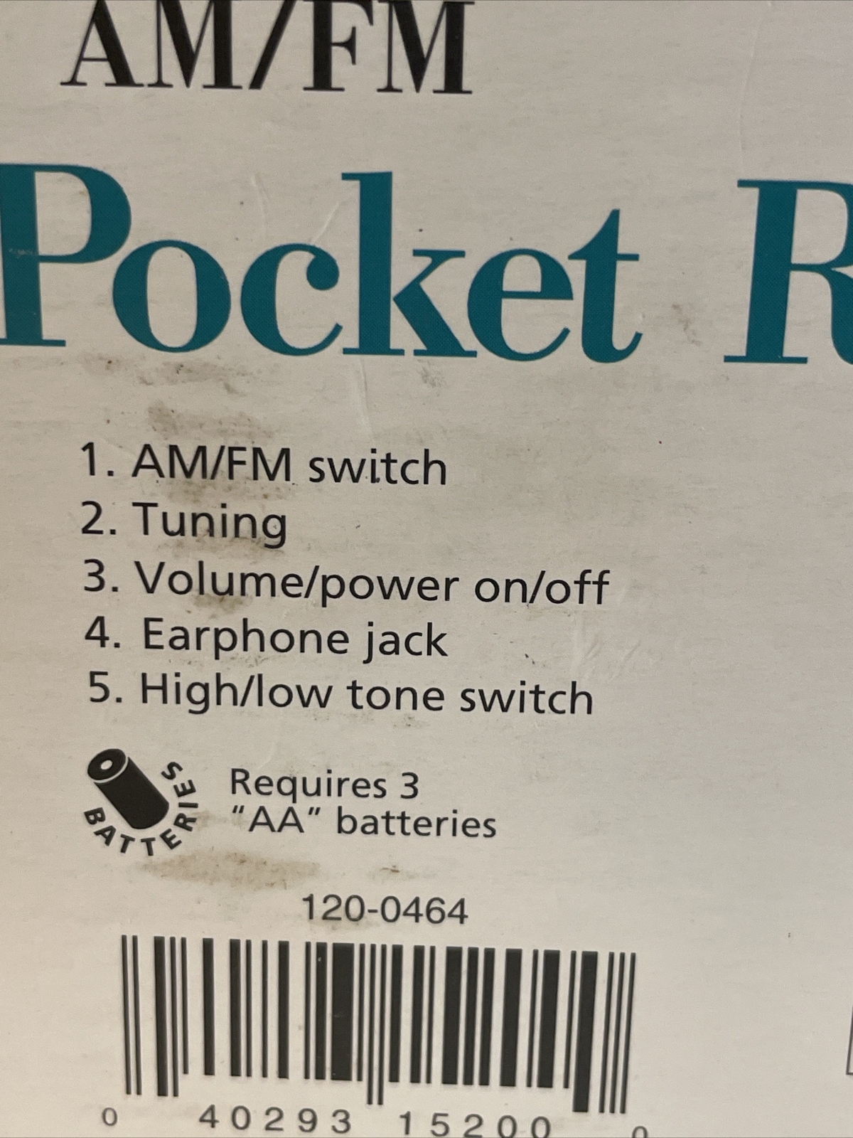 Vintage Radio Shack AM/FM Pocket RADIO 12-464 Tone Control Complete In Box