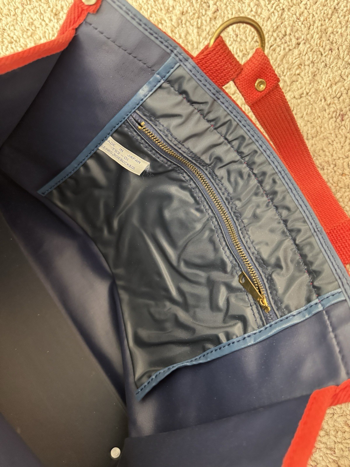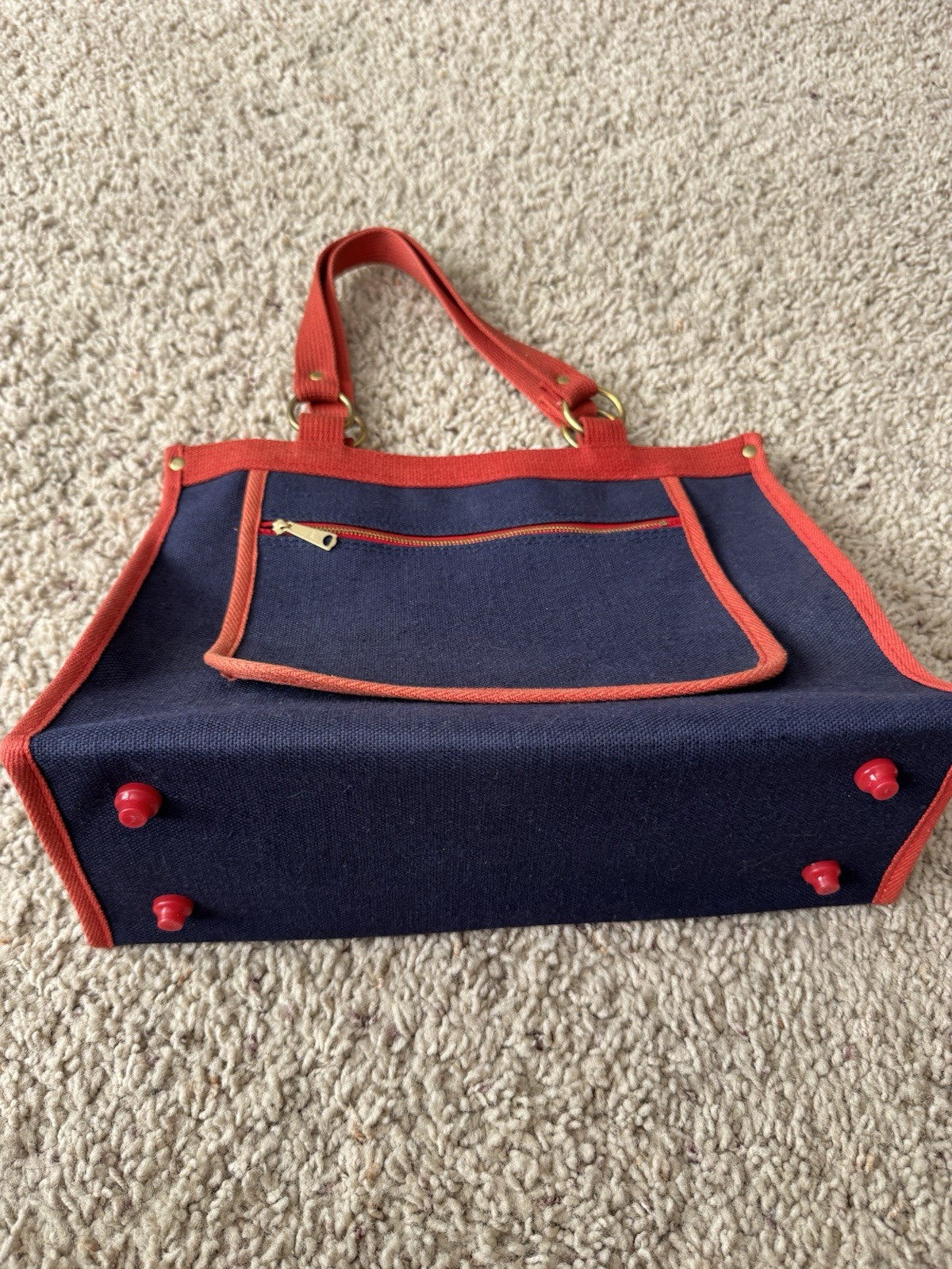 60/70 s Sears Navy Blue Red Canvas Hand Bag Purse Rockabilly Brass Japan MOD
