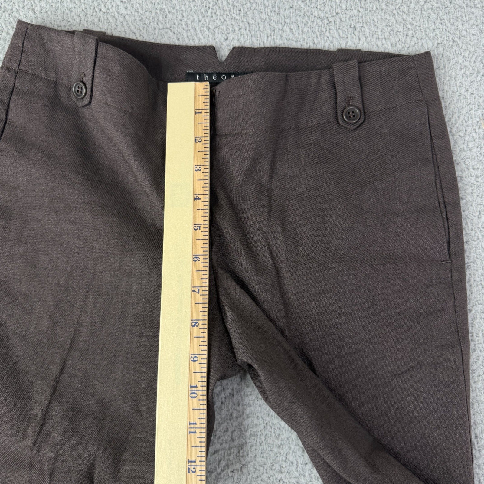 как выглядит Theory Vintage Linen Blend Straight Leg Brown Trouser Pants Women
