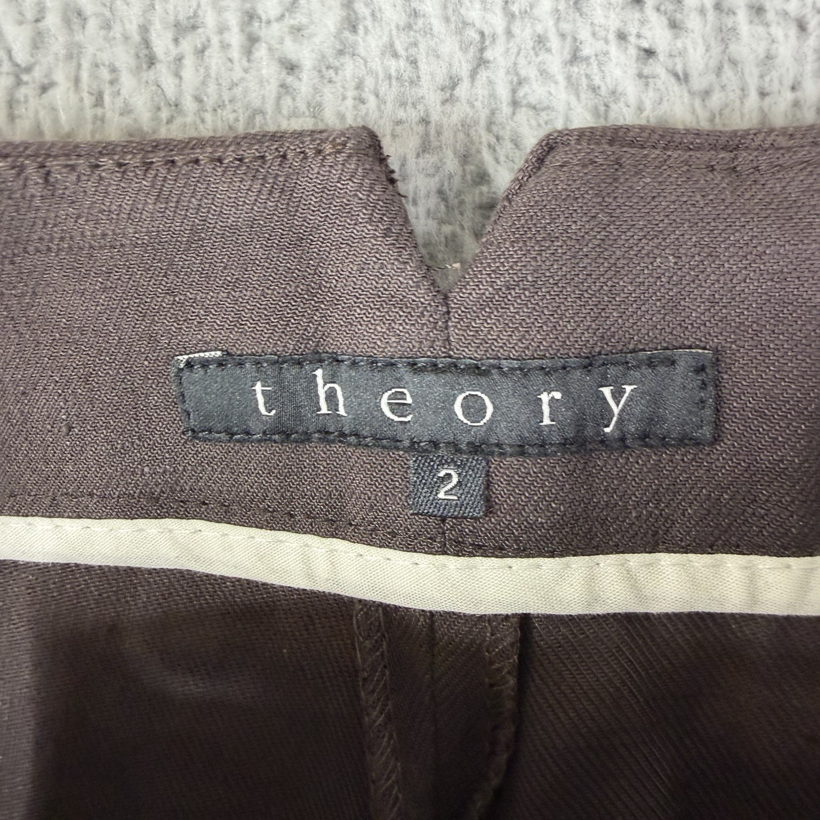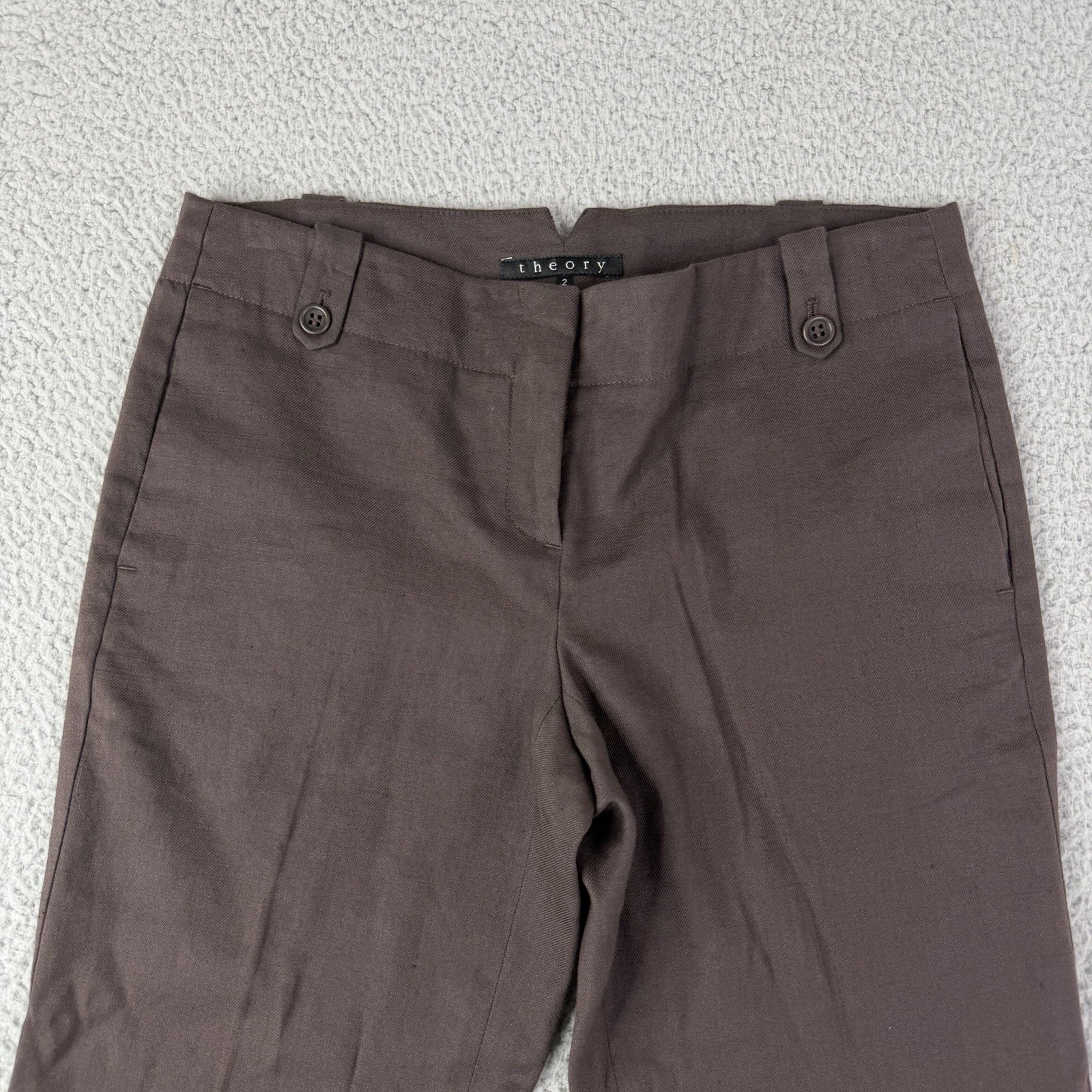 как выглядит Theory Vintage Linen Blend Straight Leg Brown Trouser Pants Womens Size 2 30x32 фото