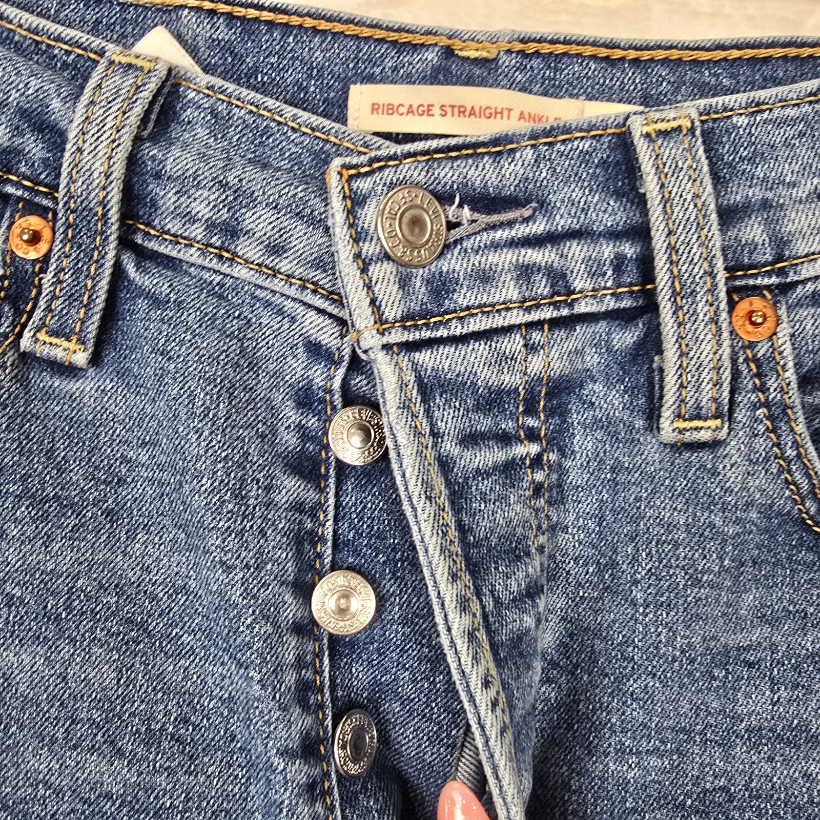 как выглядит Levis Womens Ribcage Straight Ankle Jeans Size 25 Classic Blue Wash High Rise фото