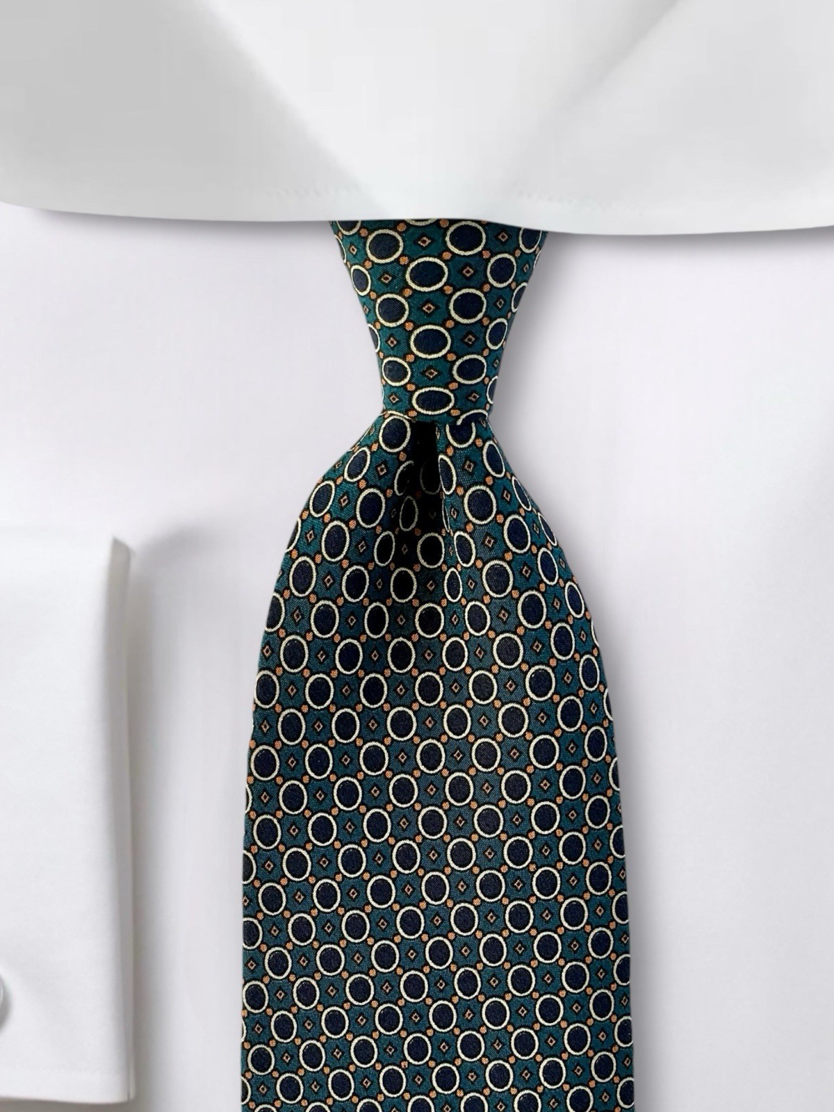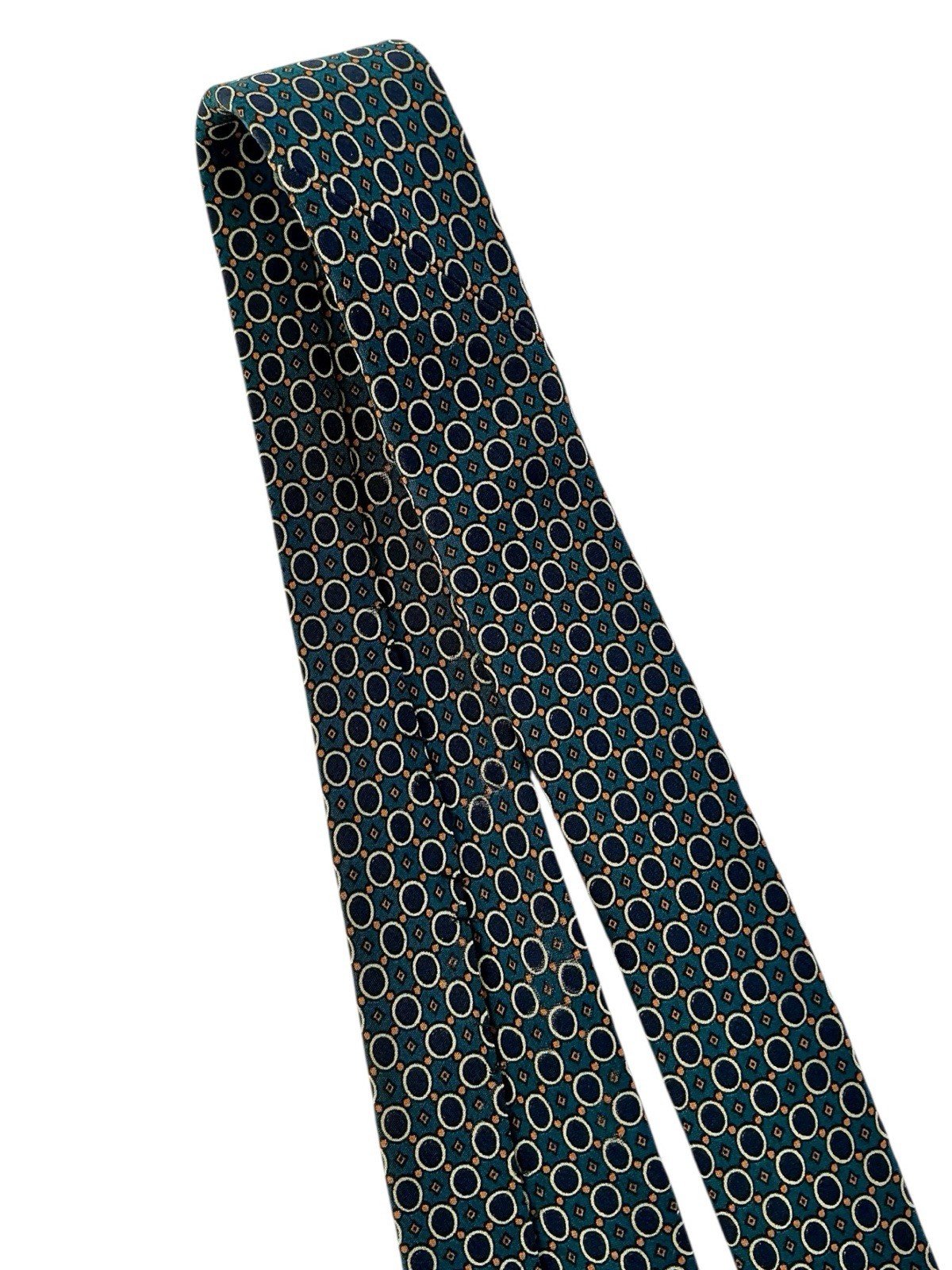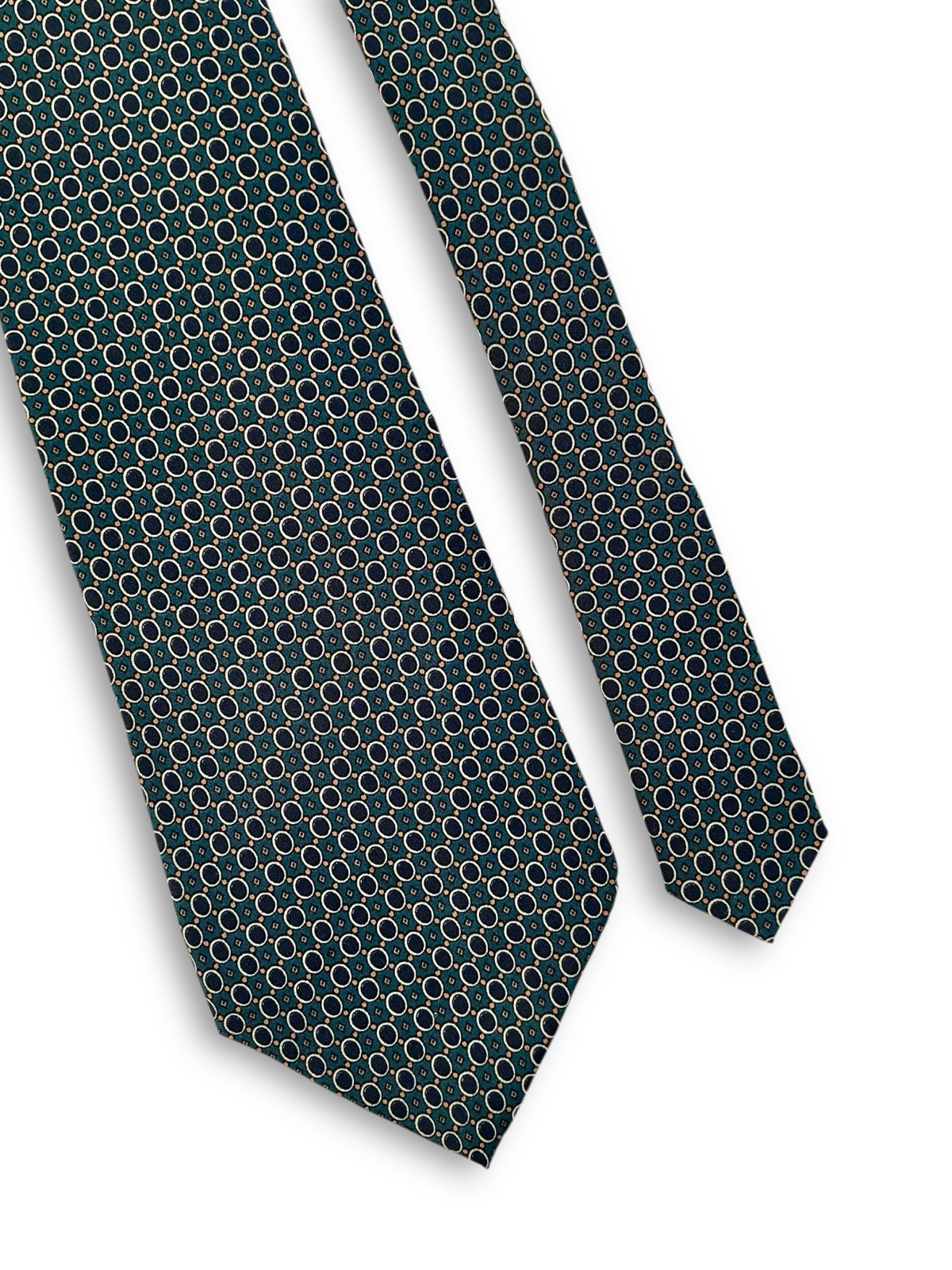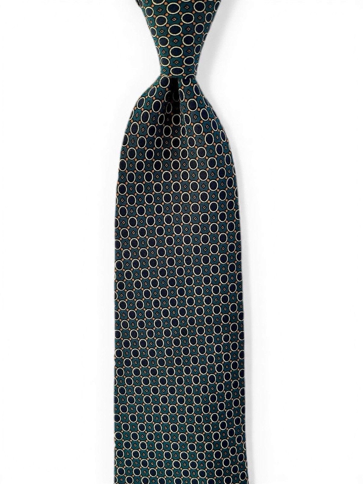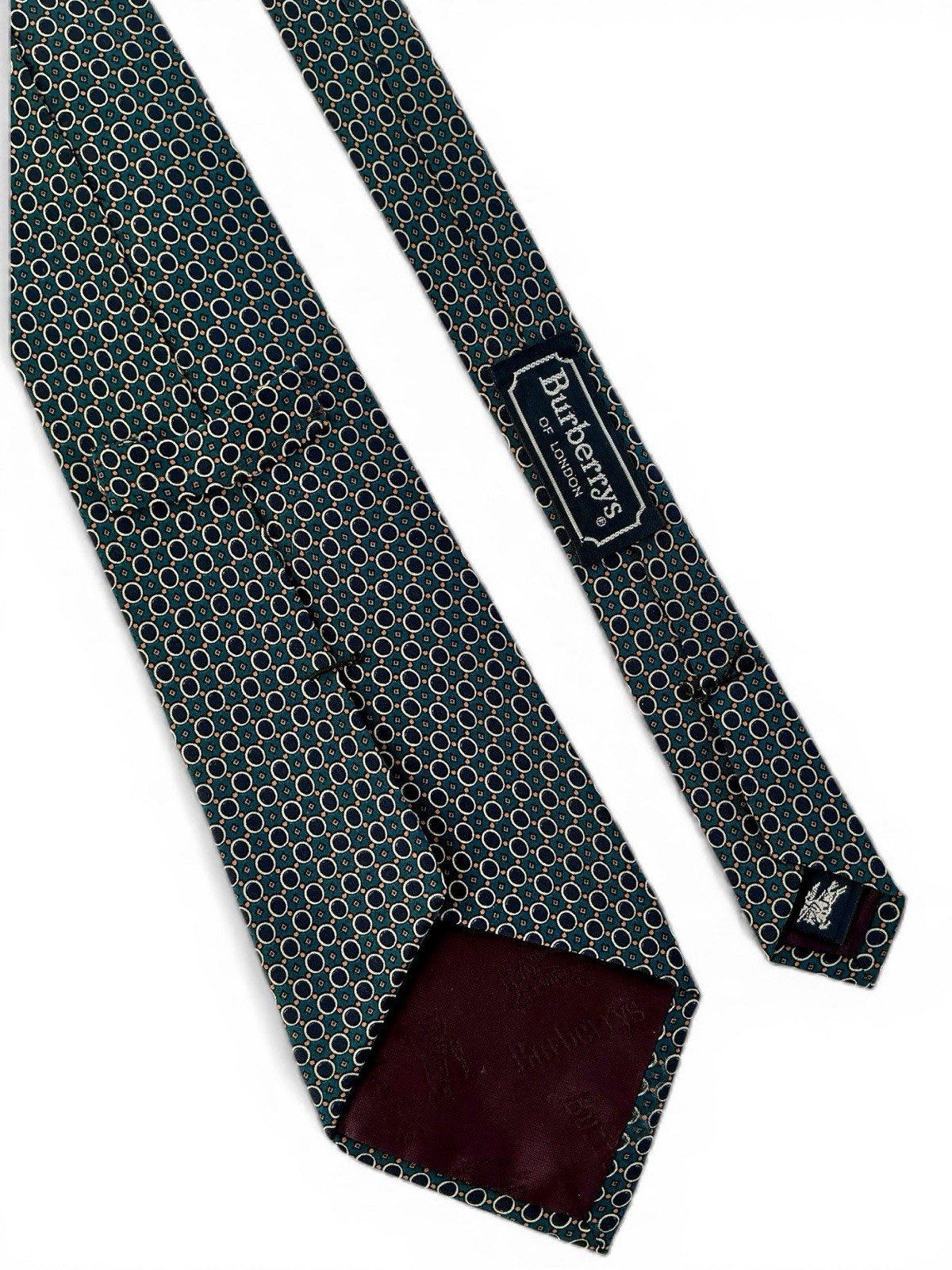Burberrys London Vintage Silk Tie Teal Navy Blue Circles Apricot Micro Diamonds
