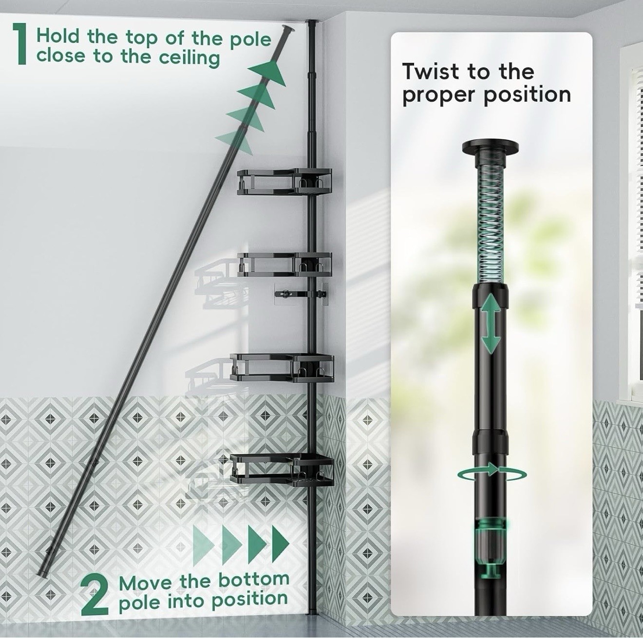 4-tier Adjustable Corner Shower Caddy Organizer with HooksRustproof Tension