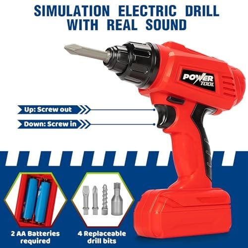Kids Tool Bench Set with Electric Drill, Realistic Tools, Construction Playset f