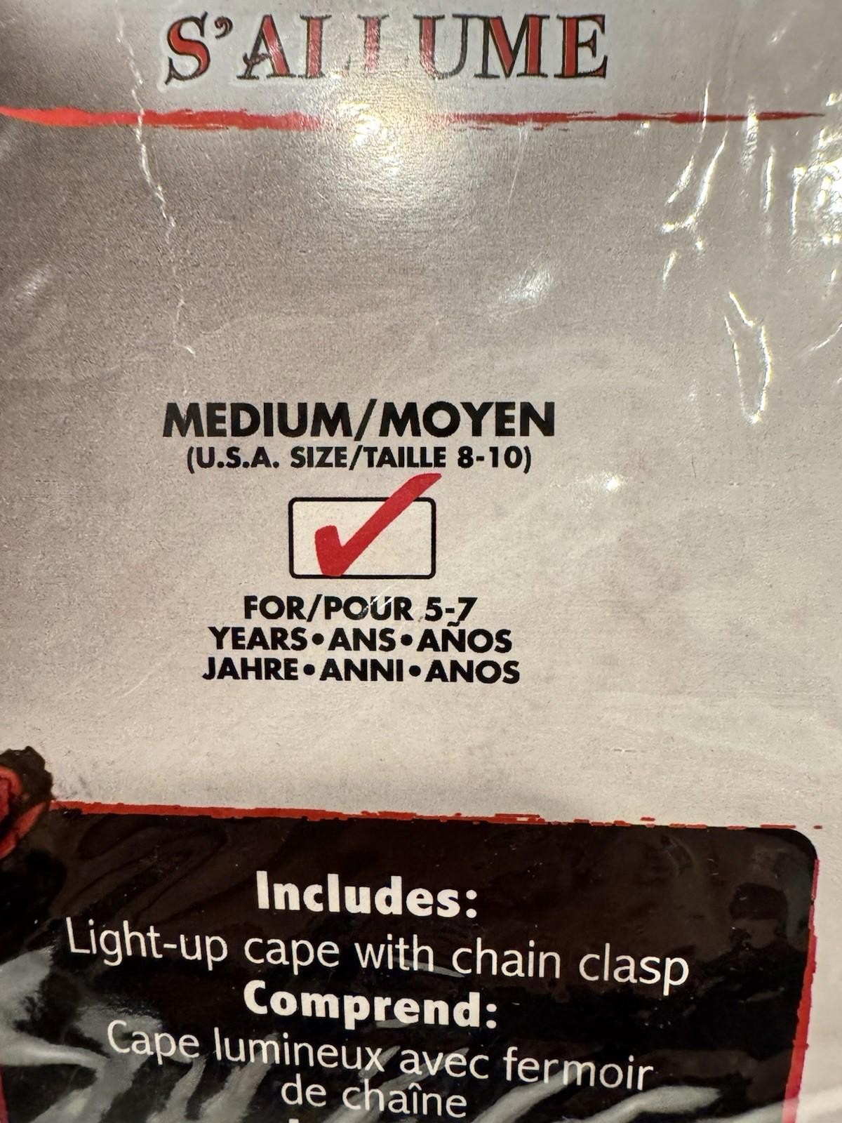 как выглядит Rubies Vampire Glowing Cape Halloween Costume Child Size Medium 8-10 фото