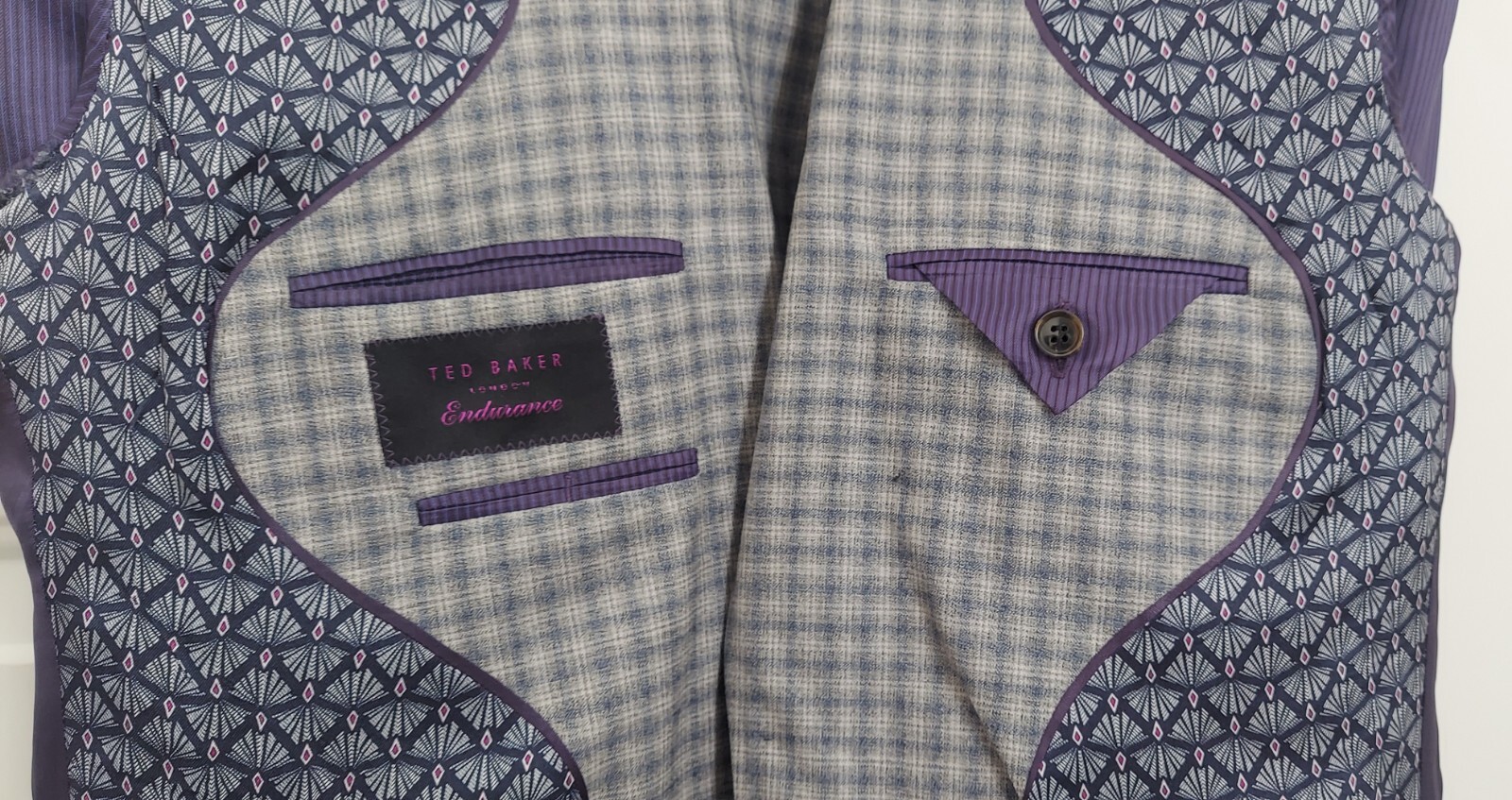 TED BAKER ENDURANCE JAY MEN'S GRAY PLAID 2-BUTTON BLAZER SIZE 42R MADE CANADA