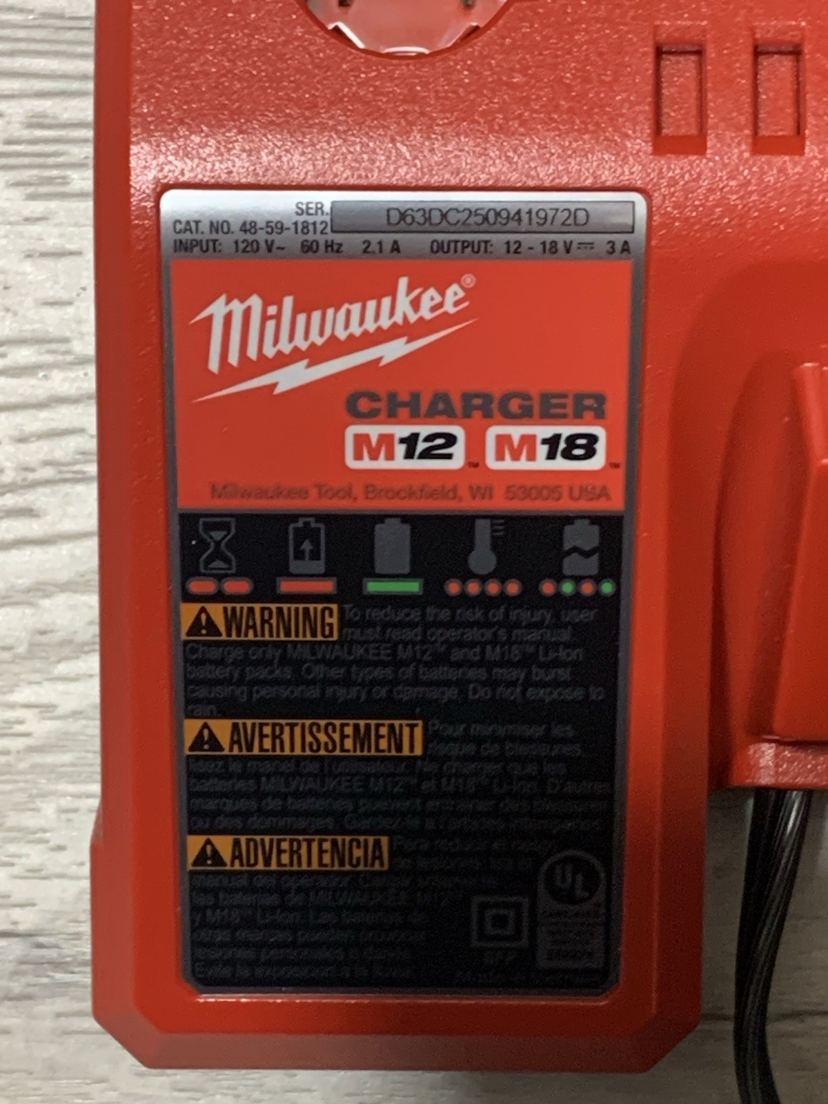 Genuine MILWAUKEE 48-59-1812 18V M12 / M18 LITHIUM ION CHARGER