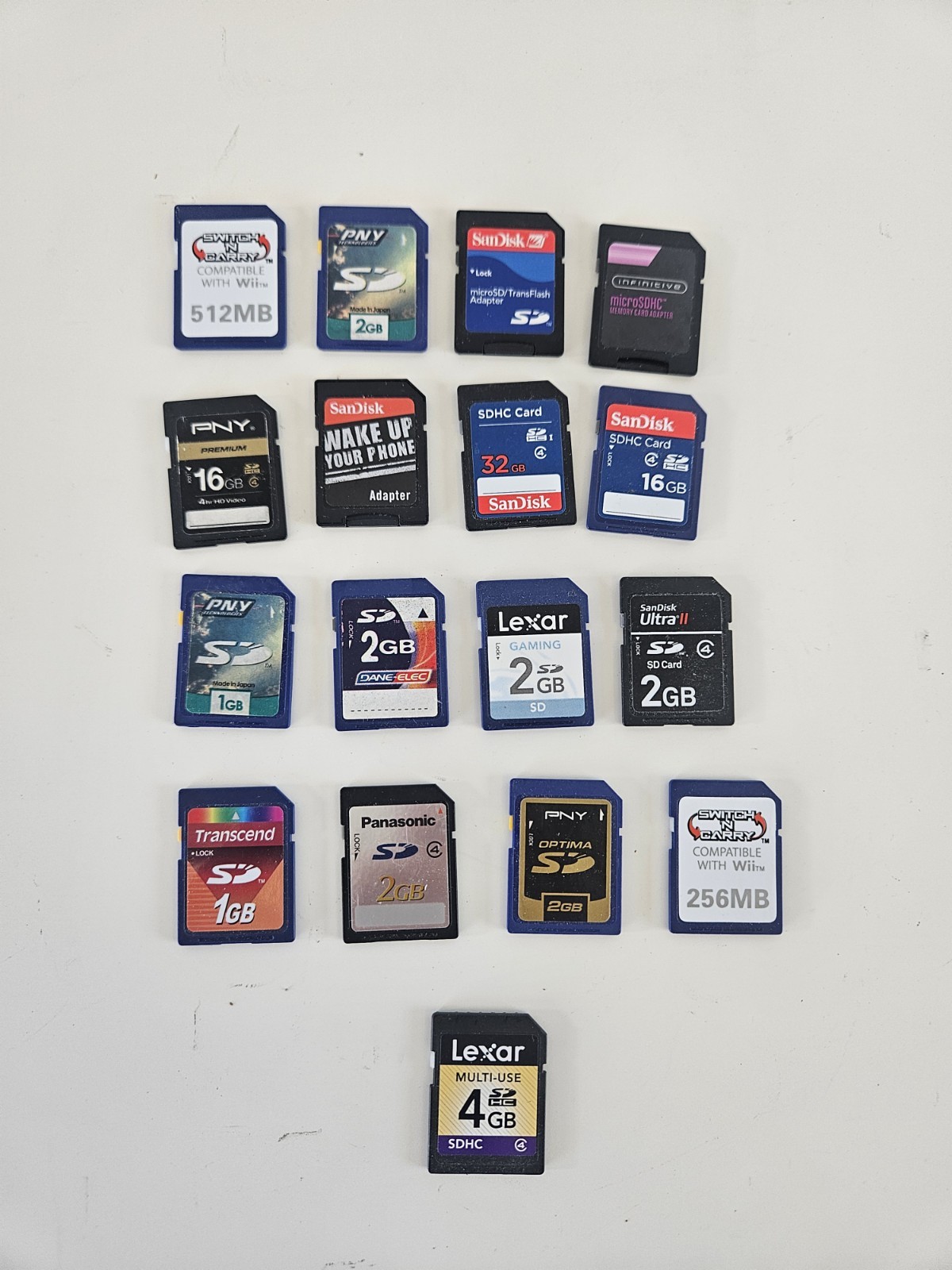 Lof Of 17 SD CARDS - Varous Brands - With Many SanDisk Cards