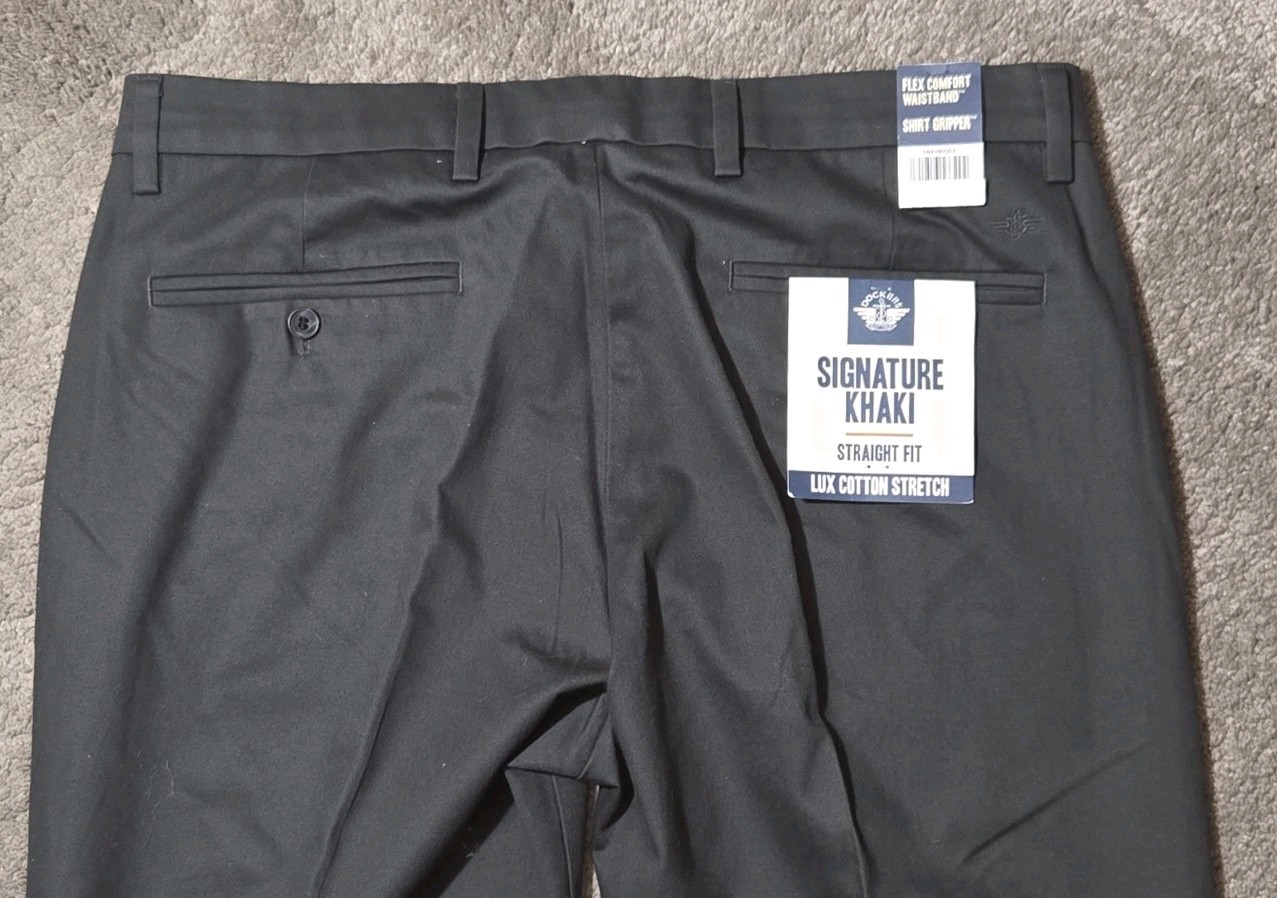 как выглядит Dockers Signature Khaki Pants Mens 36x30 Gray Shirt Gripper Straight Fit NWT фото