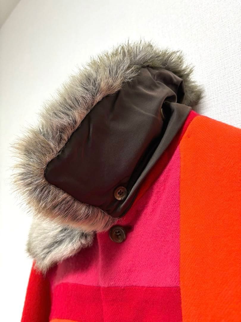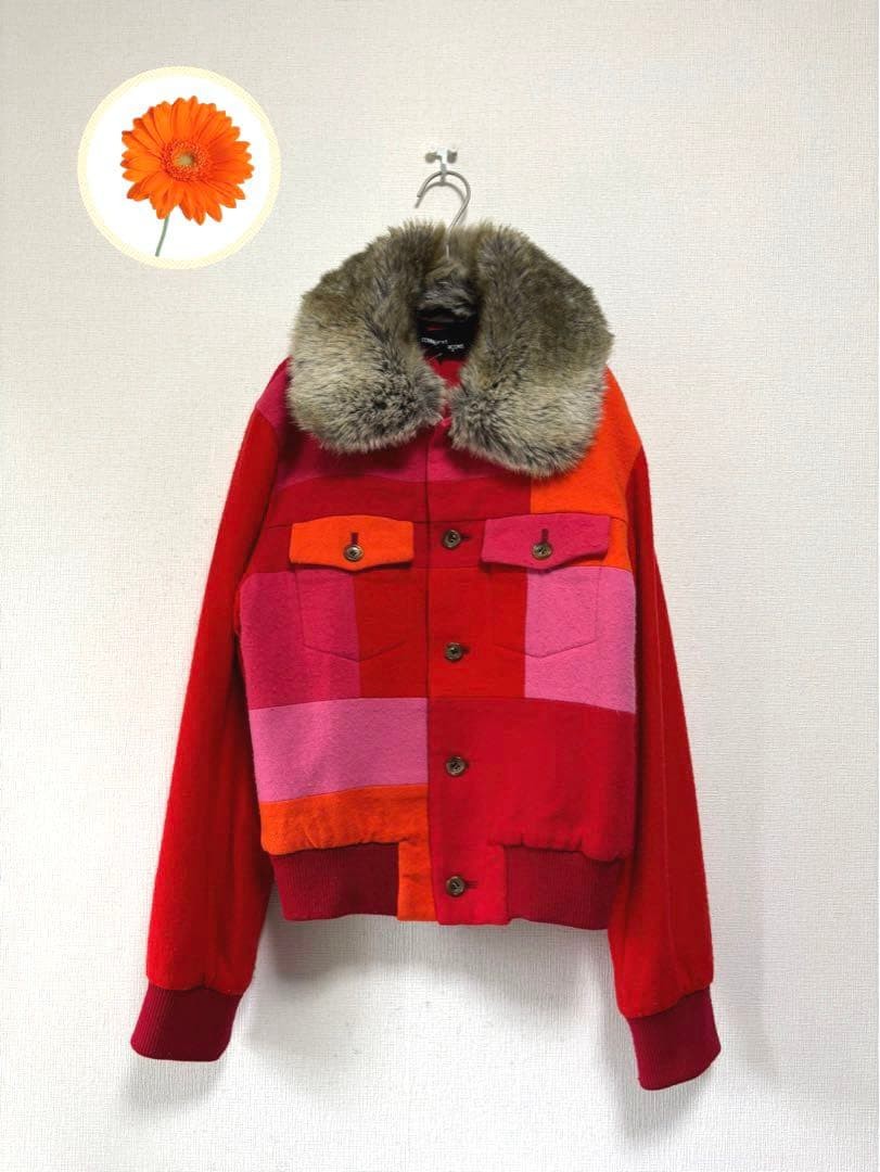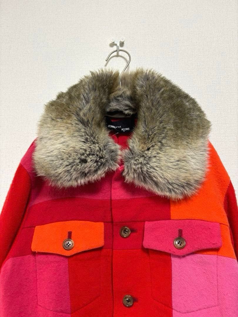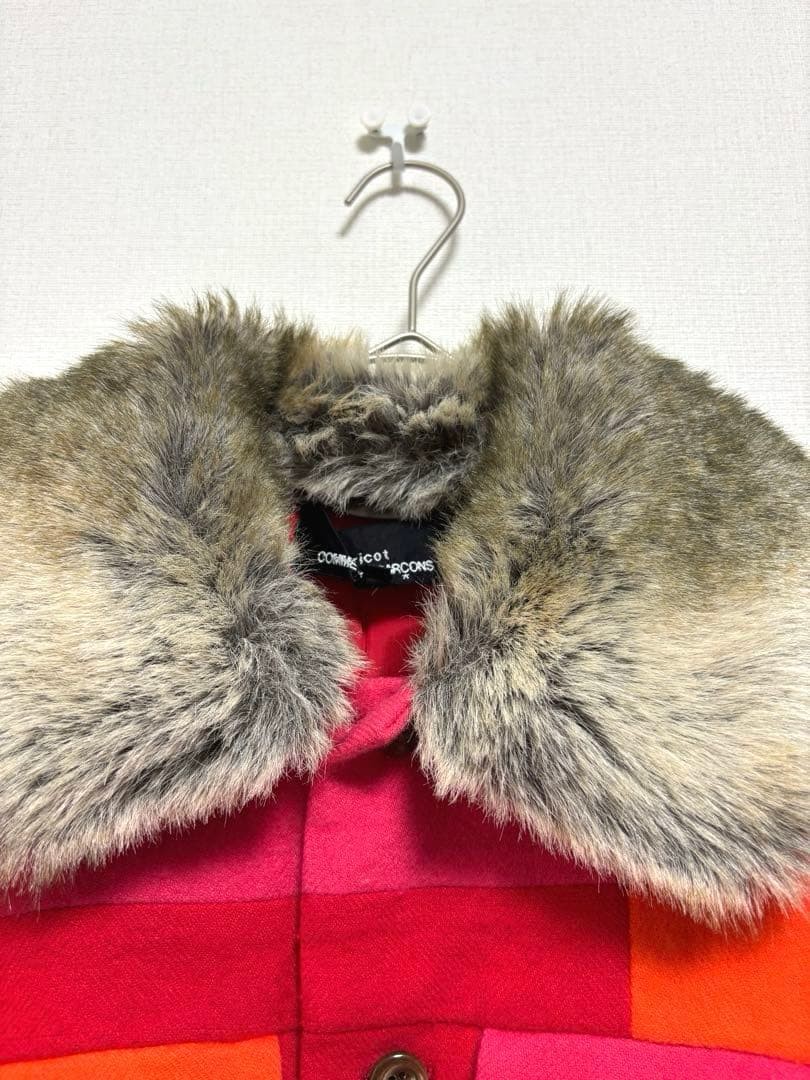 как выглядит USED M TRICOT COMME DES GARCONS BLOUSON IN RED CHECK WITH FUR AND REMOVABLE CH фото