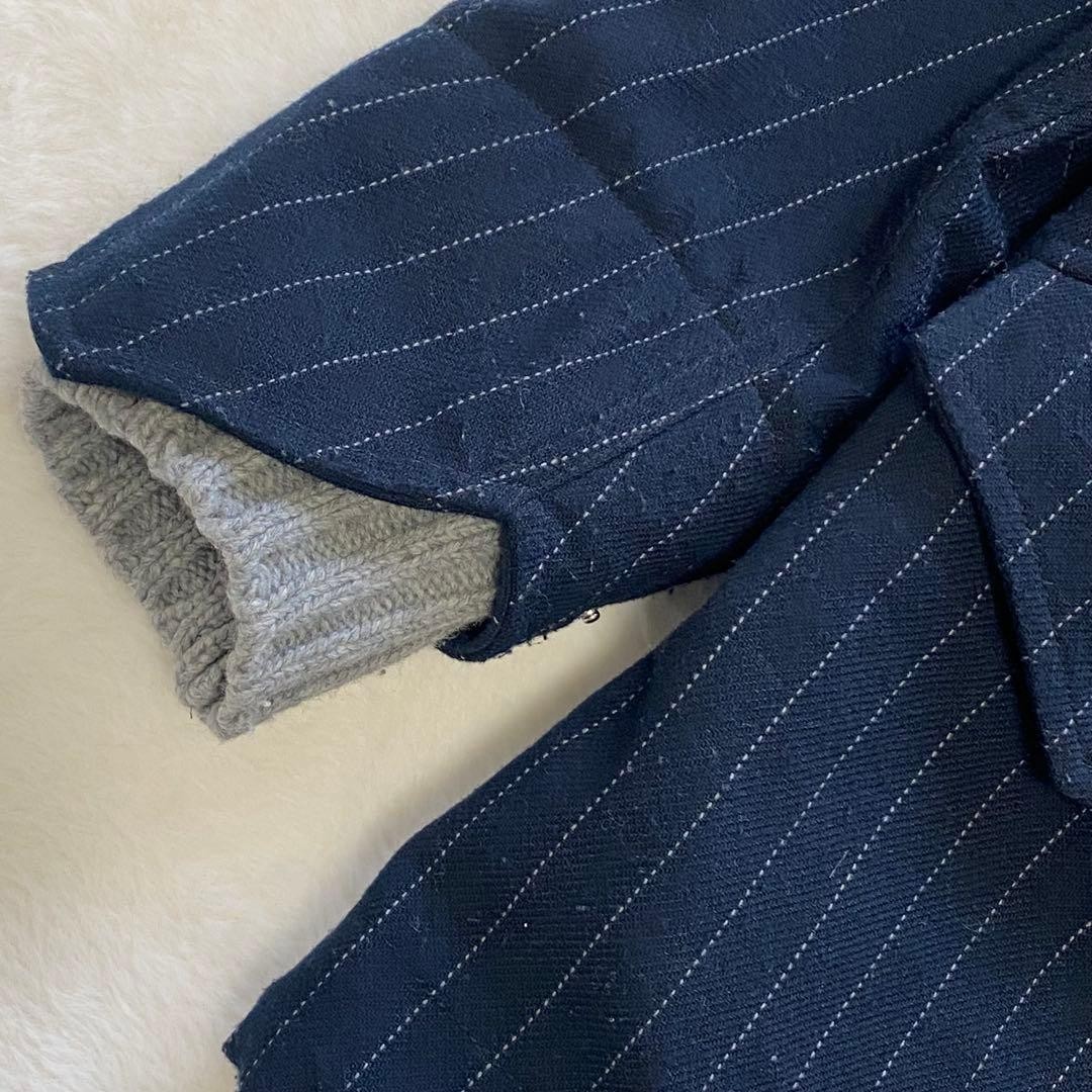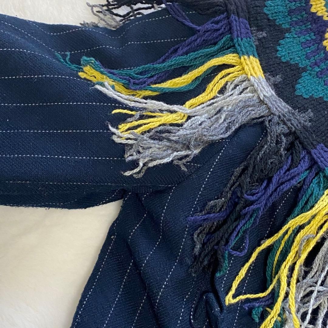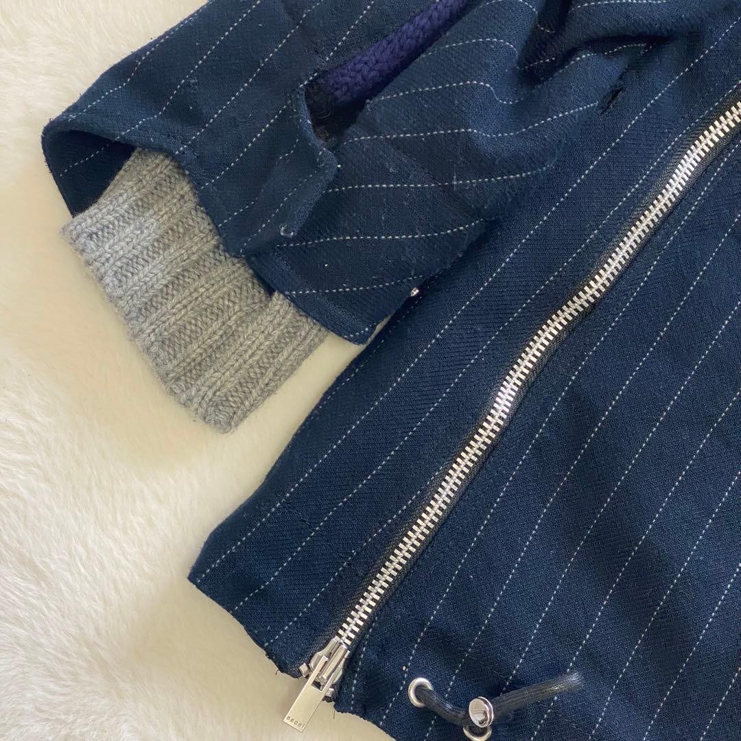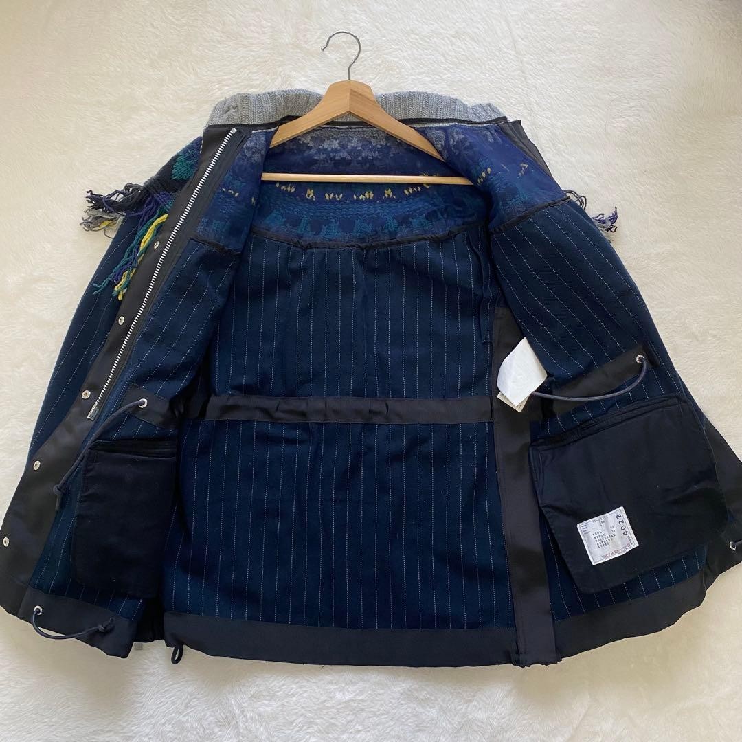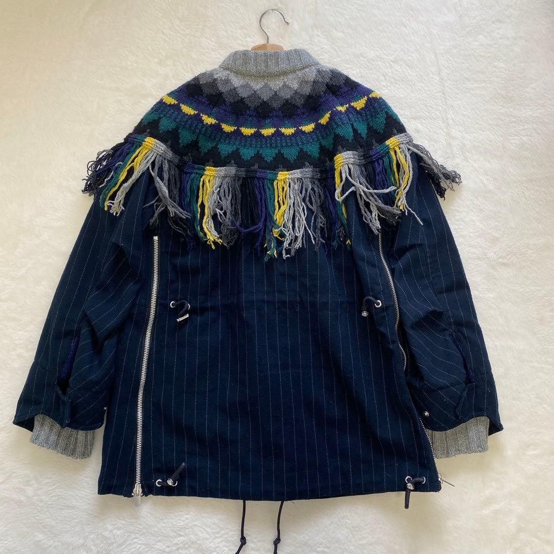 как выглядит USED SACAI BLOUSON WITH FRINGE, COVERED BUTTONS, STRIPES, AND MIXED MATERIALS фото