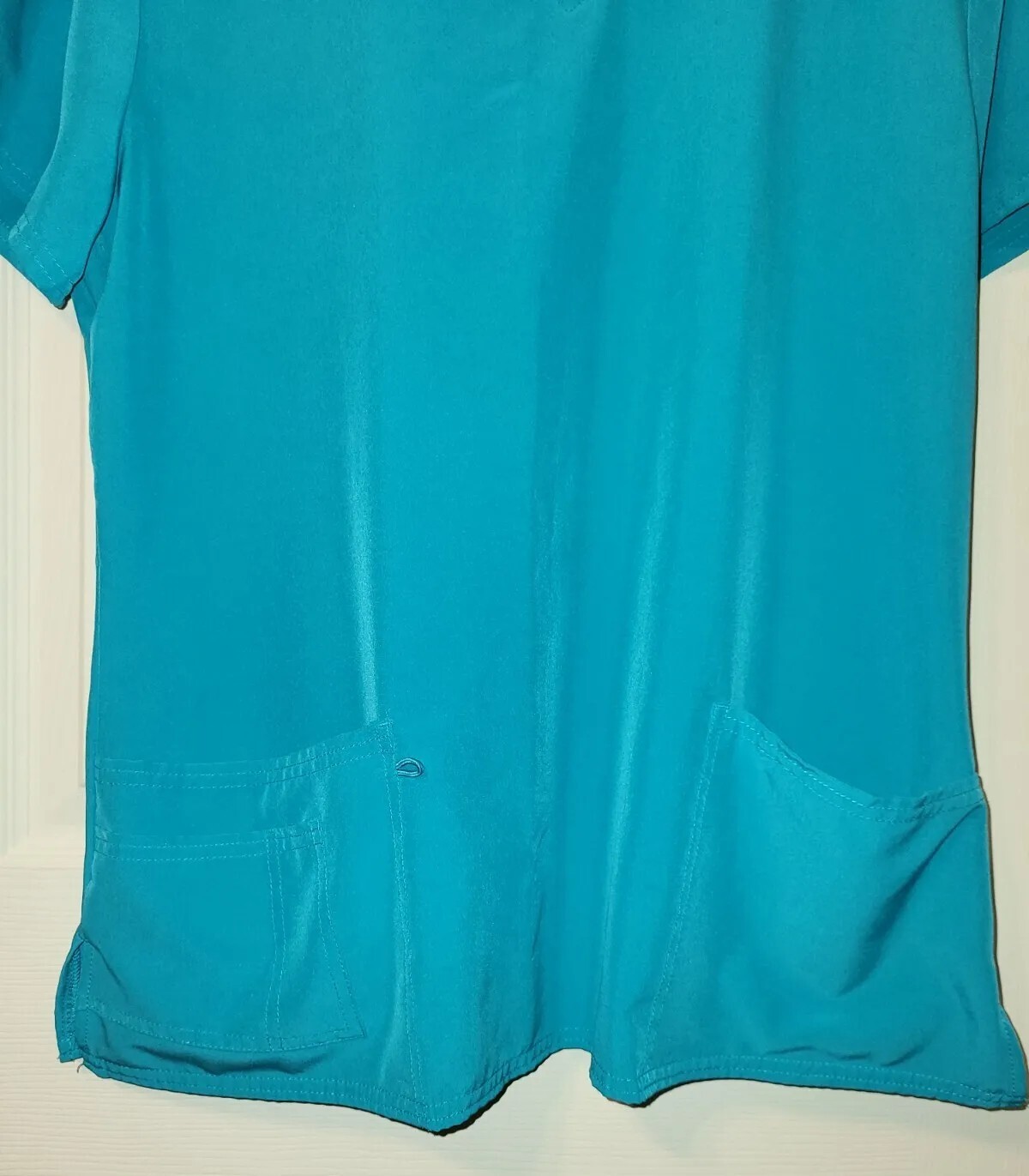 как выглядит GT Performance Womens Scrub Top Teal V neck 3 front pockets Stretch L Athletic фото