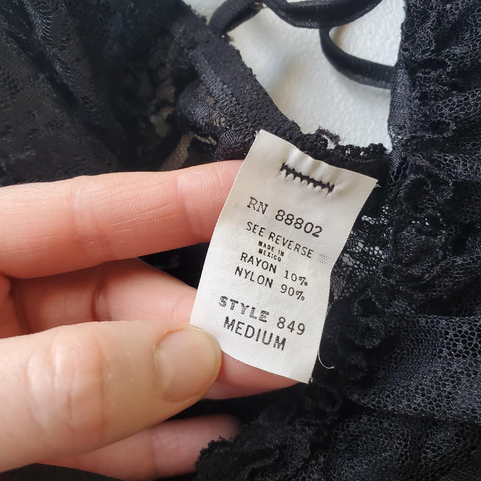 как выглядит Y2K Whimsigoth Fairy Grunge Lace Chemise Womens Medium Black Floral Babydoll фото