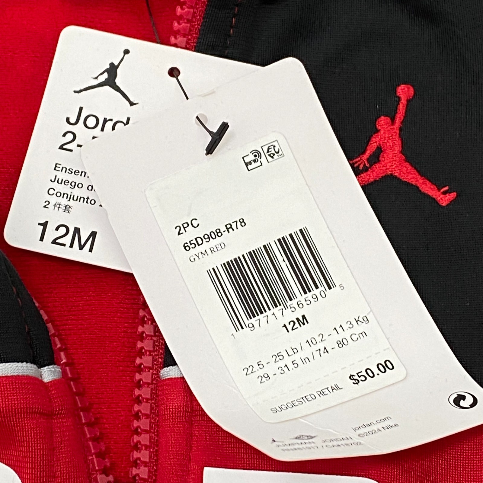 как выглядит Size 12M - Air Jordan 2 Piece Tracksuit Kids Gym Red Long Sleeve 65D908-R78 New фото