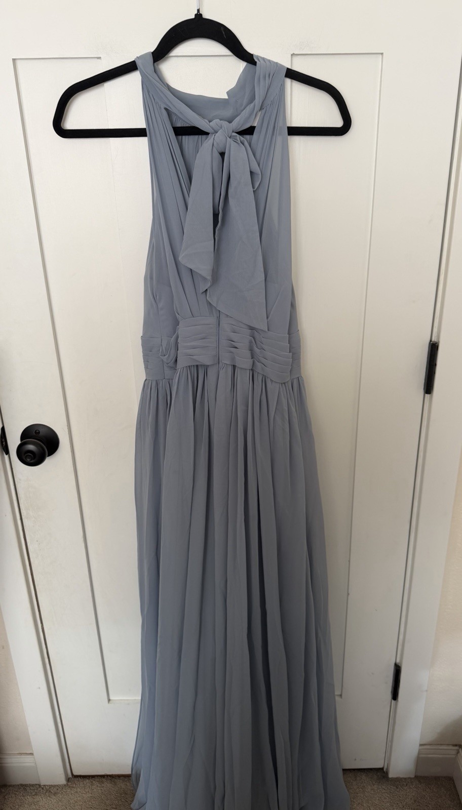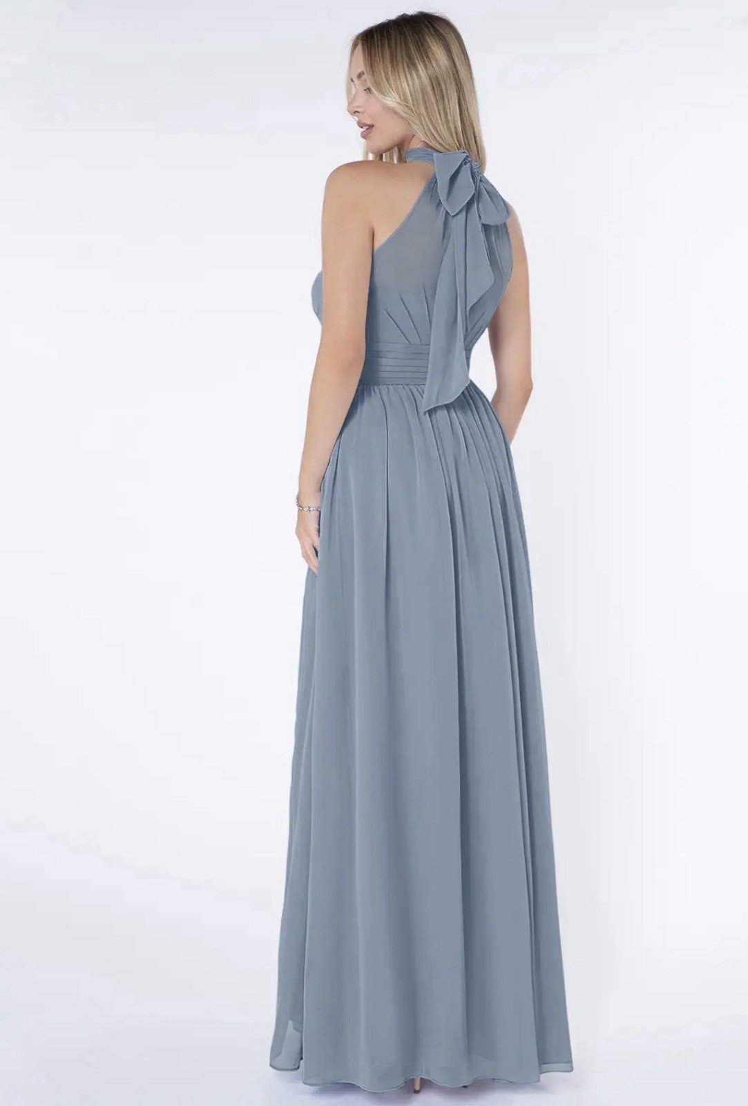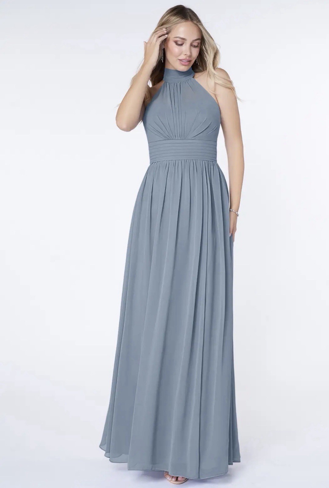 как выглядит Azazie Iman Dusty Blue A-Line Ruched Chiffon Dress Bridesmaid Gown Size A 6 фото