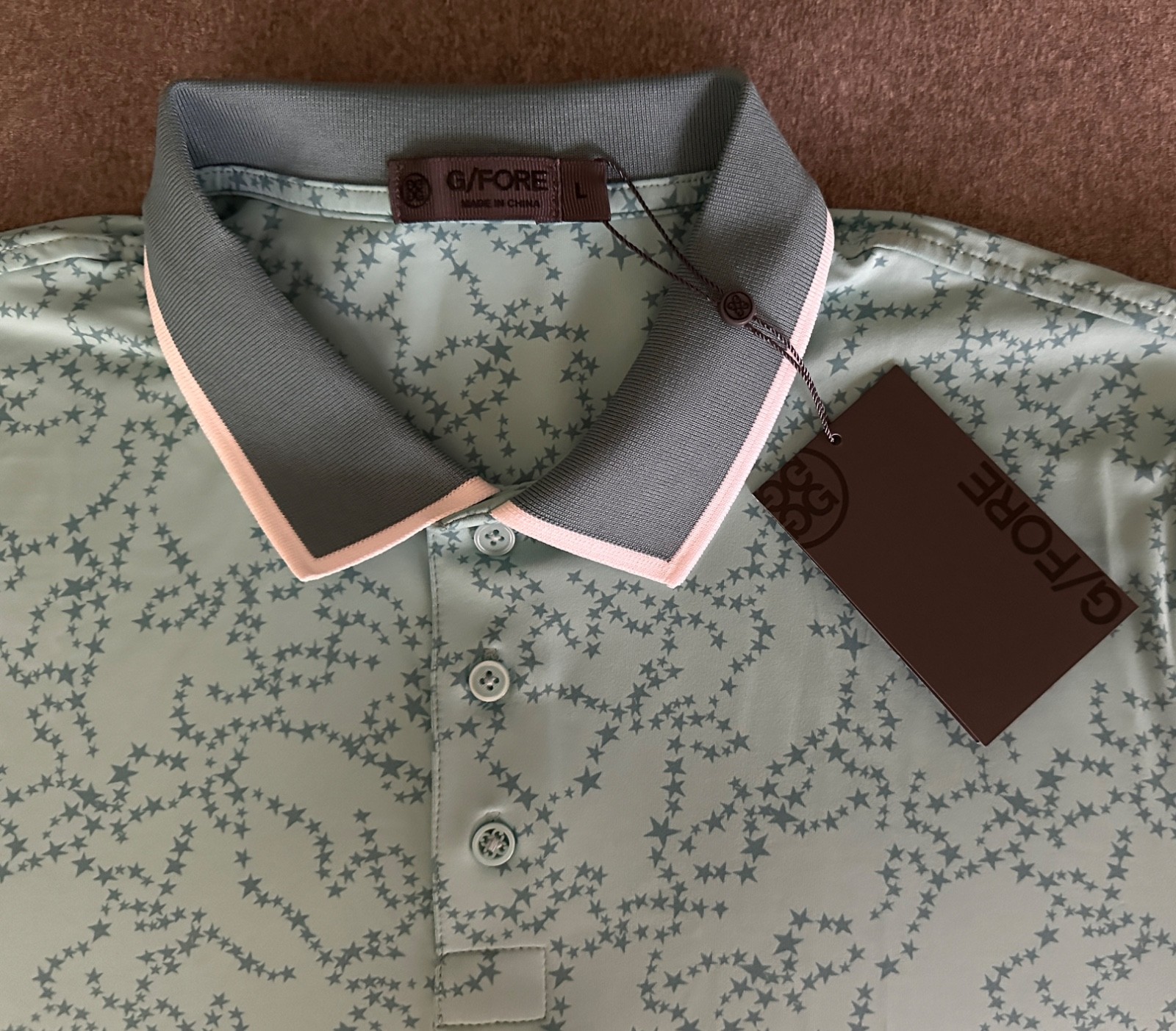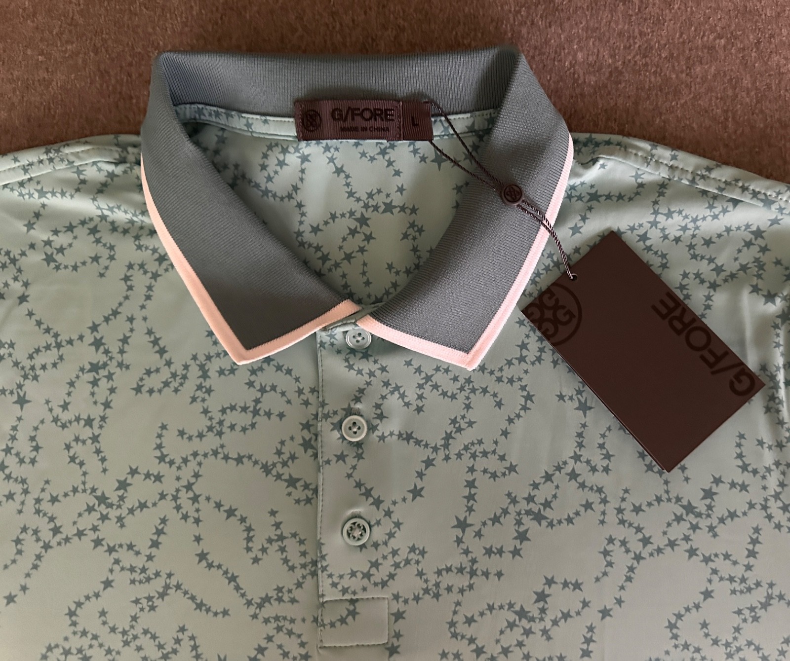 как выглядит NWT G/Fore Mens Golf Short Sleeve " Stars " Polo Shirt Size L Color MNE фото