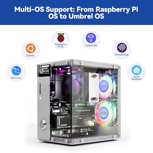 Mini PC Case for Raspberry Pi 5, NVMe M.2 SSD, Dual RGB Fans, OLED Display, HDMI