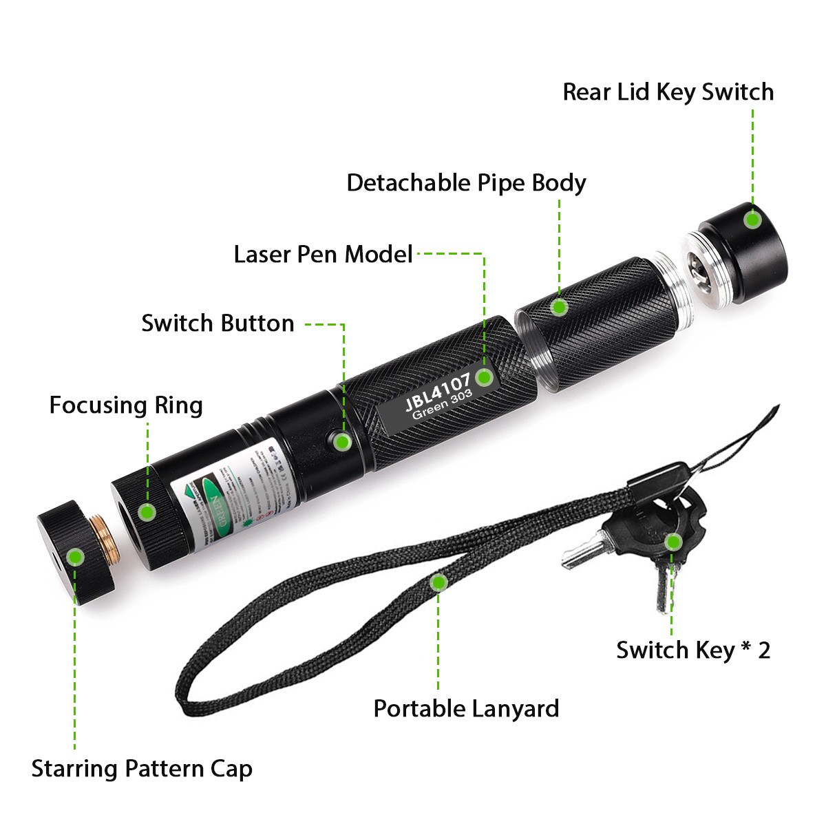 Package: 1x Green Laser + 1x USB Charger + 1x Battery